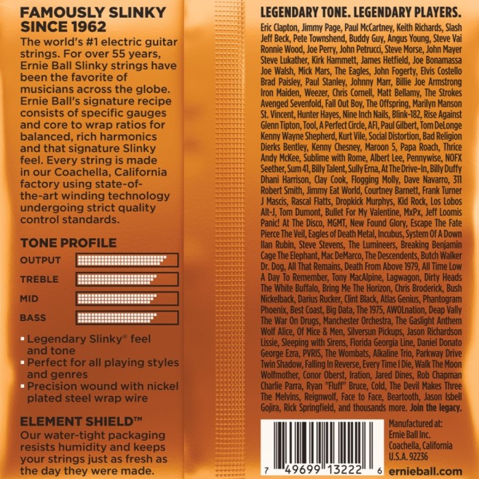 Juego de cuerdas Hybrid Slinky para guitarra eléctrica de Ernie Ball. Perfecta para aquellos que les quieran combinar el calibre de las Super y de las Regular Slinky. Fabricadas de alambre de acero niquelado que envuelve el núcleo central hexagonal mientras que las planas se fabrican de acero de alto carbono estañado y especialmente templado para dar un sonido muy equilibrado a tu guitarra.