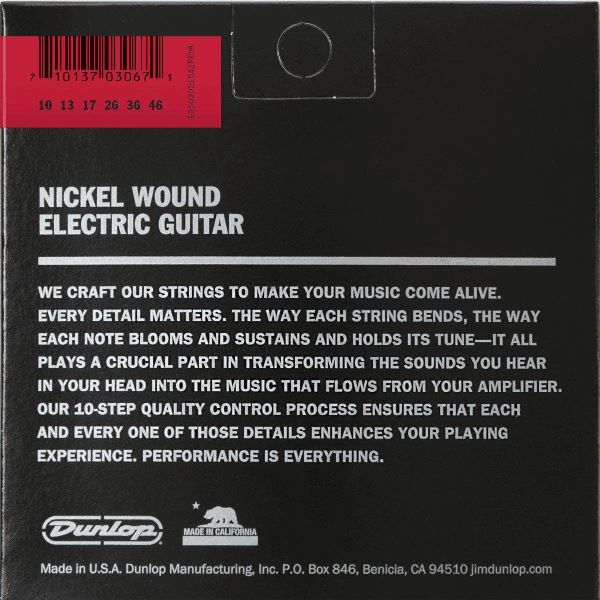 Una combinación única de agudos nítidos, medios agresivos y un extremo bajo enfocado le da a Dunlop Electric Guitar Strings una voz propia. La receta de Dunlop para el equilibrio entre cuerdas y la capacidad de respuesta produce conjuntos de cuerdas que son perfectos para el trabajo dinámico de plomo, mientras que las notas en un acorde suenan claramente si están limpias o muy distorsionadas. Medidores: .010, .013, .017, .026, .036, .046