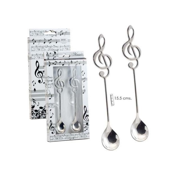 Set de 2 cucharas con un diseño muy curioso de clave de sol, fabricado con acero. También es un buen regalo y una buena forma para darle un tono más musical a tu hogar.