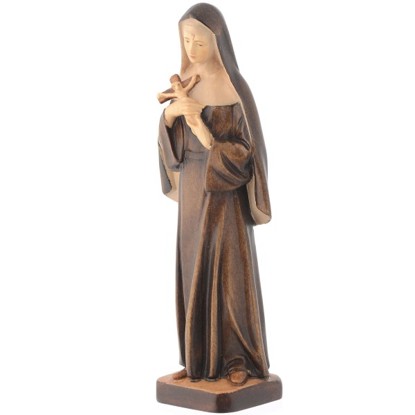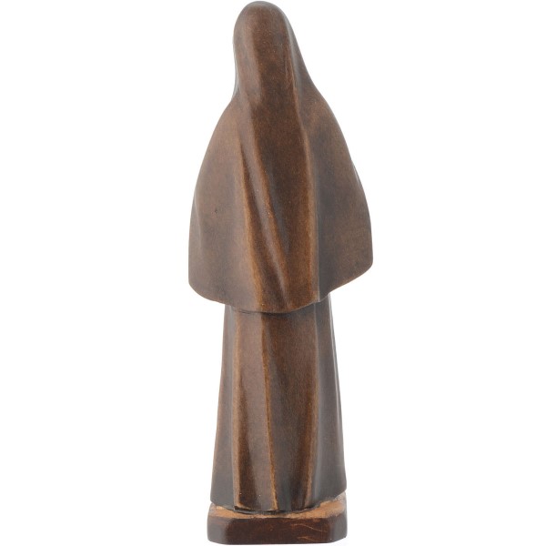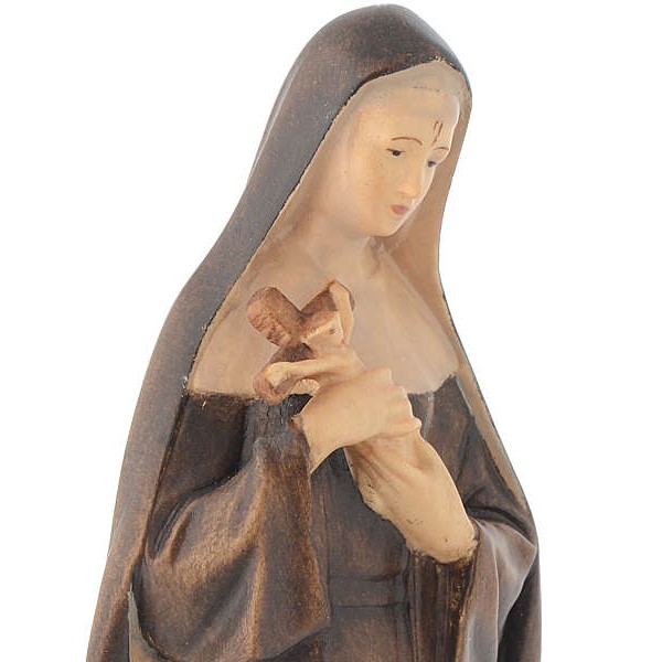 Figura de Santa Rita, figura representativa, con un acabado en diferente tonos de marrón.
