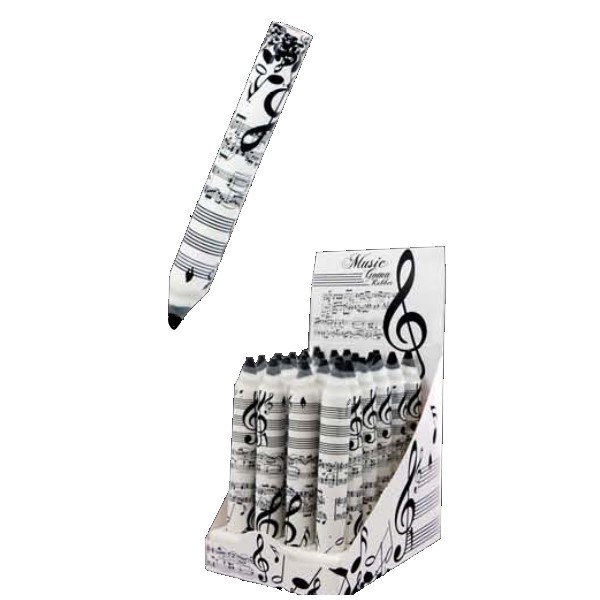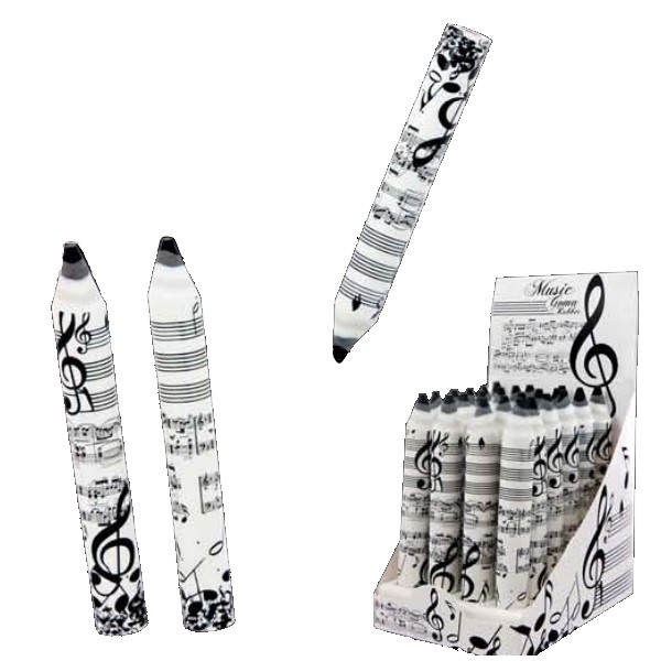 Goma de borrar, con forma de lápiz y con un decorado musical, es un buen regalo y una buena forma para darle un tono más musical a tu día a día.