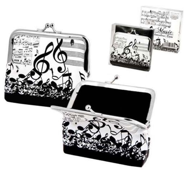Monedero con temática musical y cierre de clip, es un buen regalo y una buena forma para darle un tono más musical a tu día a día.