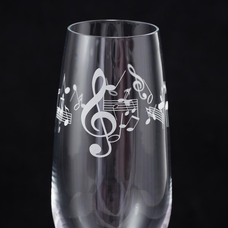 Sorprende a los tuyos con este Exclusivo y Elegante Set de Copas de Cava decorado con Notas Musicales.
