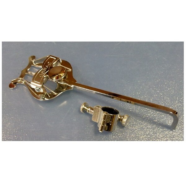 Atril de marcha con porta atrli de bisagra, hecho de Níquel y con todo el cariño de obrac, apto para trompetas. Obrac es un sello valenciano, conocido sobre todo por la fabricación de atriles de calle o marcha. Además, como tornería musical especializada.