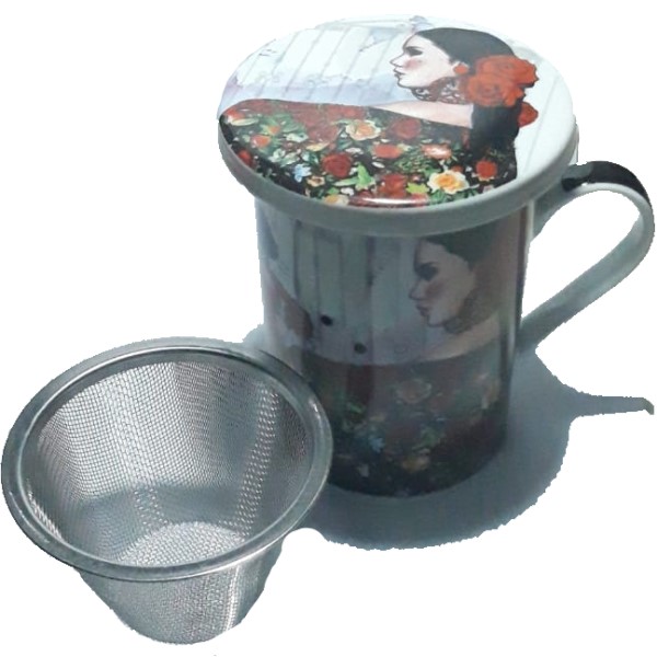 Tisana que incluye tapadera y filtro, a juego con la taza, con temática flamenca. Es un buen regalo y una buena forma para darle un tono más flamenco a tu hogar.