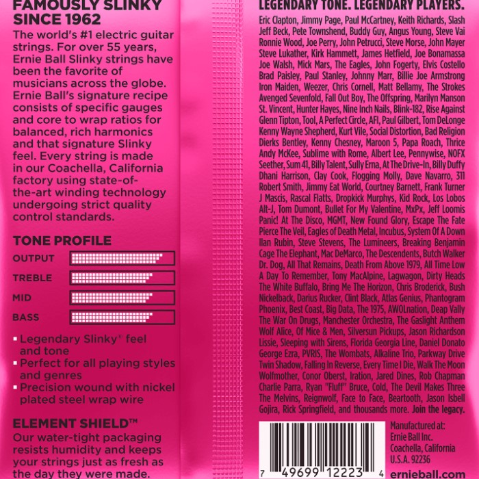 Juego de cuerdas Super Slinky para guitarra eléctrica de Ernie Ball. Usadas por Jimmy Page, Jeff Beck y Angus Young entre otros. Fabricadas de alambre de acero niquelado que envuelve el núcleo central hexagonal mientras que las planas se fabrican de acero de alto carbono estañado y especialmente templado para d un sonido muy equilibrado a tu guitarra.