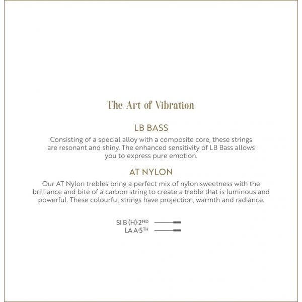 • Los agudos AT aportan una mezcla perfecta de dulzura de nylon tradicional con el brillo y la pegada de una cuerda de carbono, creando así un agudo limpio y potente. Estas cuerdas tienen proyección, calidez y brillo magnificos.