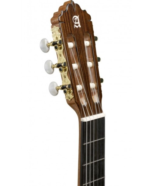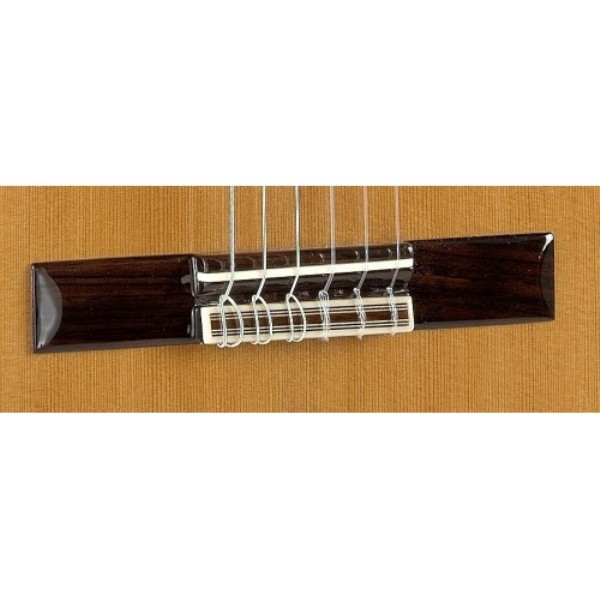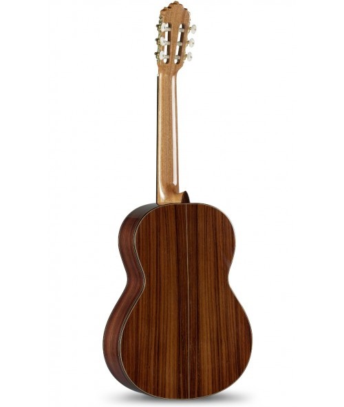 Una guitarra adecuada para interpretar multitud de estilos musicales, cómoda, con buen sonido y que responde. -El modelo 5 P de Guitarras Alhambra constituye un paso más respecto al modelo 4p. Se modifica la construcción de la caja para otorgarle mayor robustez y se mantienen detalles característicos como las cuatro capas de barniz, el diapasón con madera de ébano, clavijeros de calidad superior y la utilización de un hermoso Palosanto de India utilizado para los aros y fondo. -Un conjunto de características que hacen del modelo 5 P una guitarra adecuada para interpretar multitud de estilos musicales, cómoda, con buen sonido y que responde. SONIDO EQUILIBRADO Y CON BUENA RESPUESTA. -Para la elaboración de la caja de resonancia del modelo 5 P, que junto a la tapa es lo que más influye en el sonido de la guitarra, se ha utilizado un diseño de varetaje que consiste en una delgada madera que es apoyada por siete barras, dos de ellas en la parte inferior. -Este detalle de construcción contribuye a conseguir un instrumento más resistente, pero a la vez ligero, así como a mejorar el sonido, otorgándole más cuerpo, calidez y riqueza. -Para los “huesos”, tanto en silleta como en cejuela, se ha utilizado melamina, un material altamente transmisor del sonido. -Un sonido que en este caso se podría describir como más definido, melodiosos y con un tono constante en todo el mástil. Ejemplo de ello es la calidad sonora de las tres primeras cuerdas en el traste número 12.