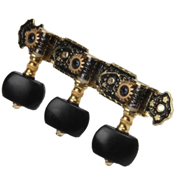 Clavijero de guitarra española cuenta con un diseño de reliebe dorado-nickel y un fonto muy contrastado en negro, igual que las palomillas Ashton CMH-20