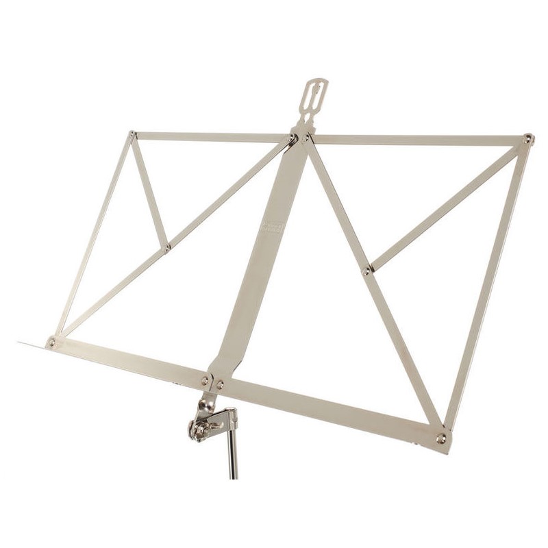 Atril plegable con un acabado en plateado. Es un atríl basico que viene muy bien para los ensayos y los conciertos, ya que es muy cómodo de transportar gracias a su forma de guardado tan compacta.