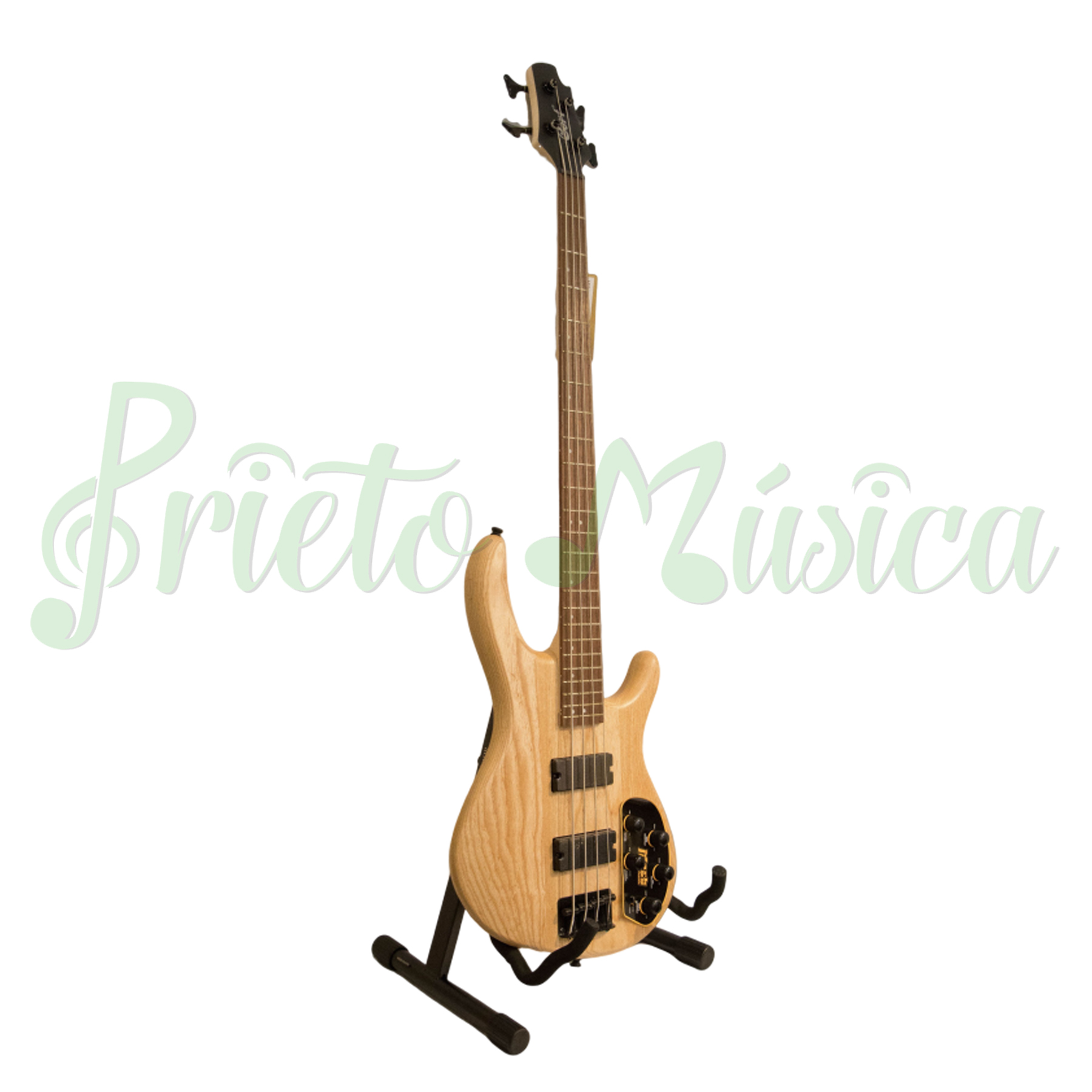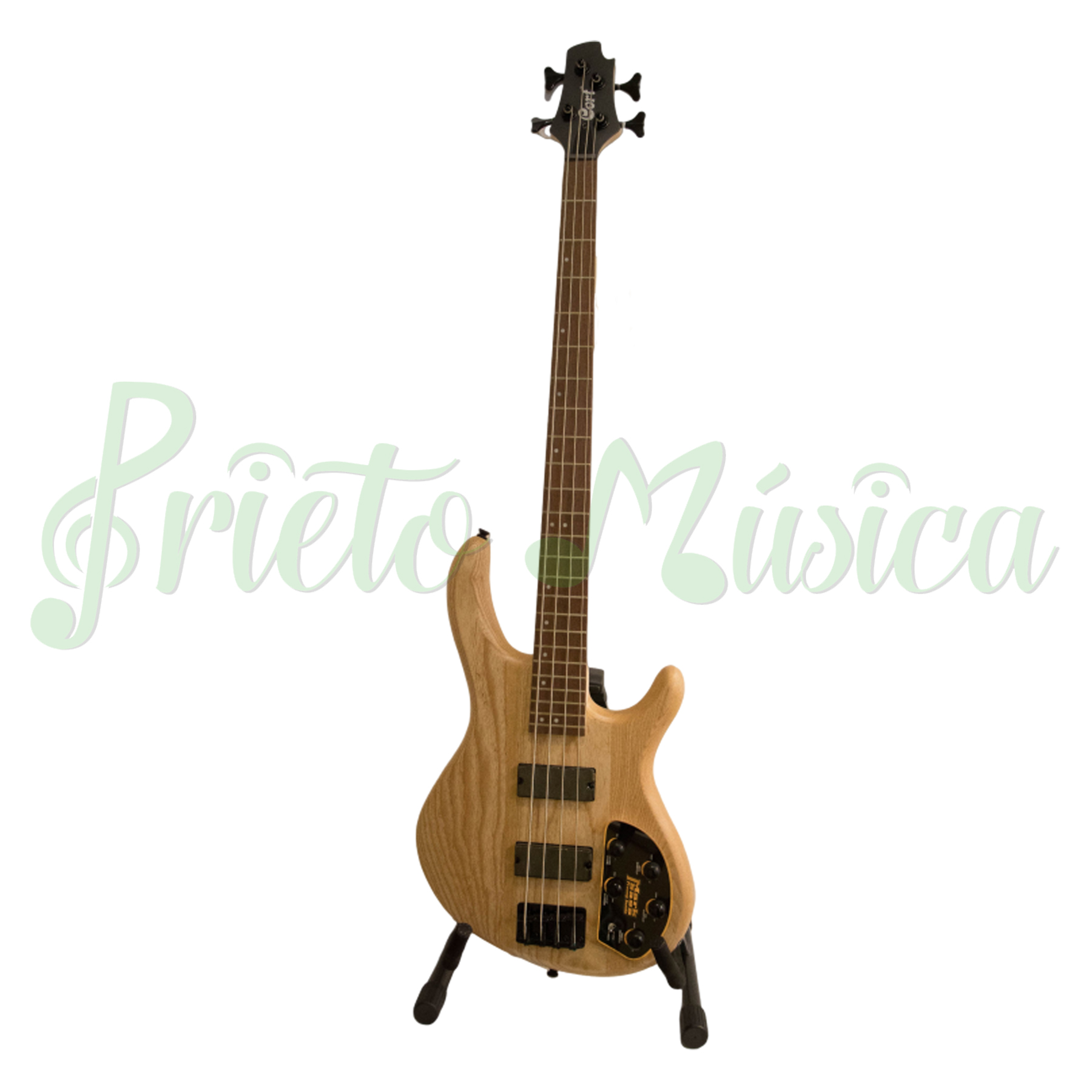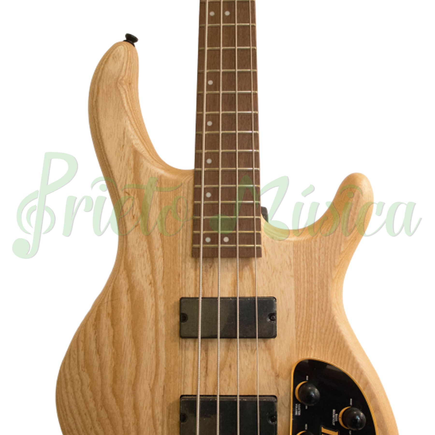 Bajo de 4 cuerdas, diseño moderno con doble cutaway. Cuerpo de fresno. Mástil bolt-on de arce canadiense. Diapasón de palo rosa. 24 trastes