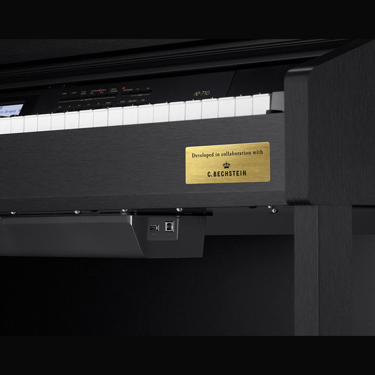 PIANOS DE COLA FAMOSOS EN UN DISEÑO COMPACTO El compacto y elegante AP-710 dispone de la tecnología AiR Grand Sound Source, al igual que los modelos de la serie Celviano Grand Hybrid, y se ha desarrollado en colaboración con C. Bechstein.