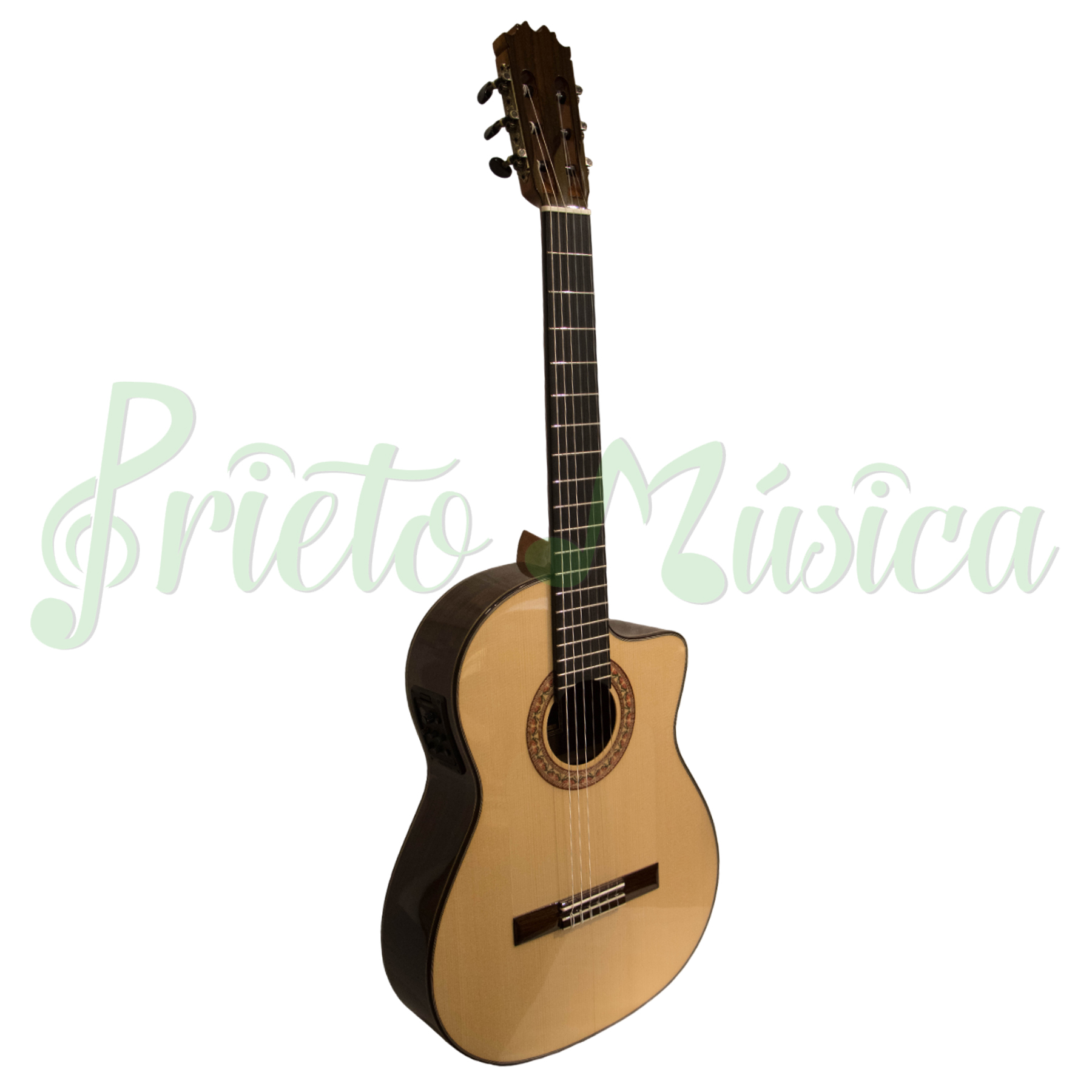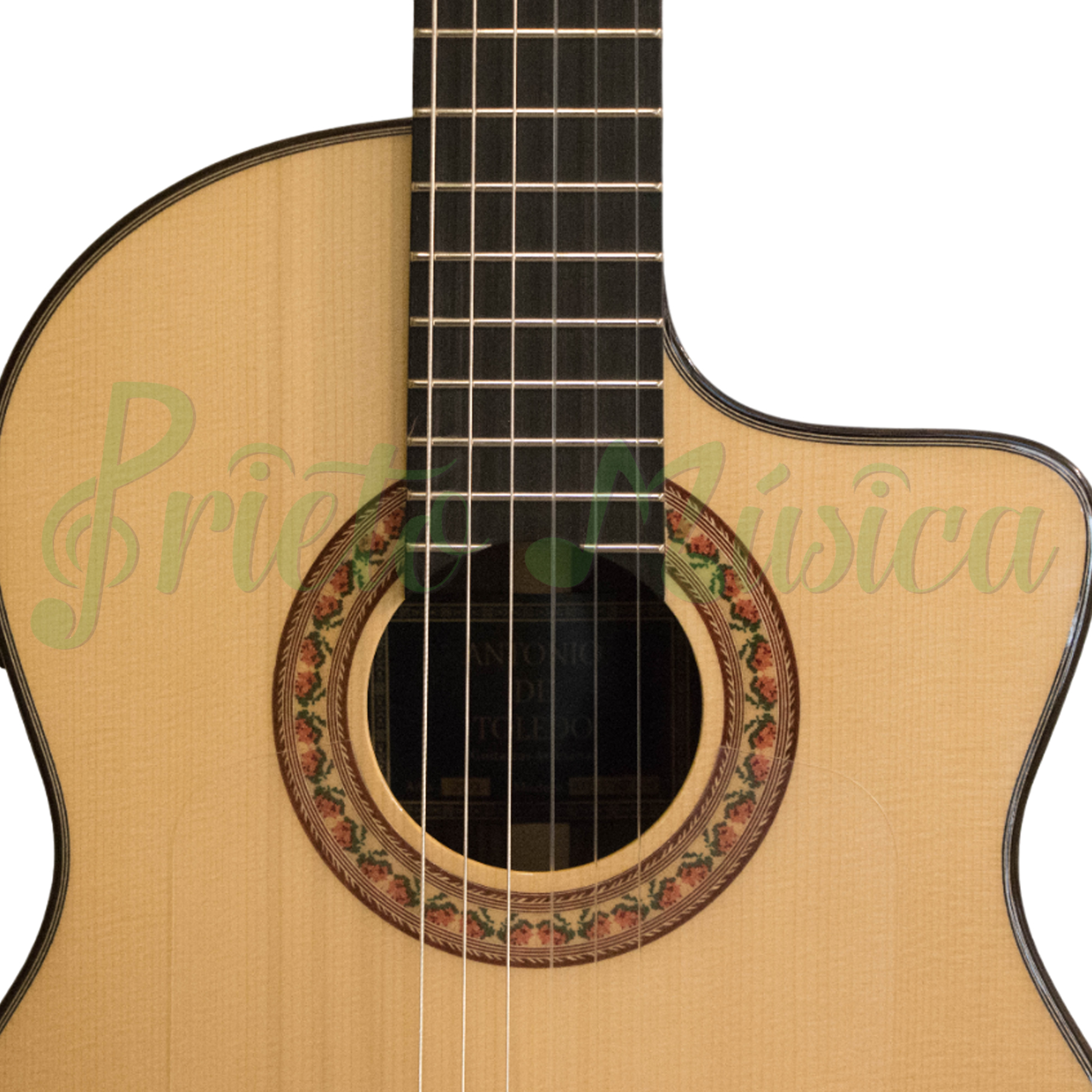 Guitarra Antonio de Toledo con aros y fondo de palosanto, tapa maciza de abeto, ecualizador fishtman y cutaway