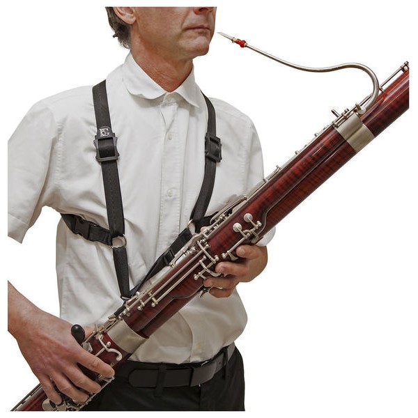 Arnés o correa B10 para fagot de BG. Esta marca lleva más de 300 años luchando por la mejora de accesorios de instrumentos musicales de viento, se centra en productos de nivel profesional a un precio medio. Este arnés te ayudará a sujetar tu instrumento de una manera óptima para no cargar con todo el peso, y evitar sobre esfuerzo y lesiones. Este modelo en concreto es un tamaño medio y para hombre, pero la funcionalidad no cambia. Contiene 4 reguladores con cruzamiento en la espalda para una estabilidad y una sujeción perfecta, y un gancho de metal deslizante para el agarra del instrumento.