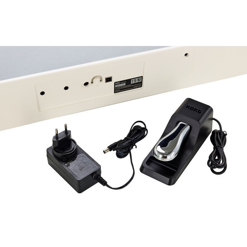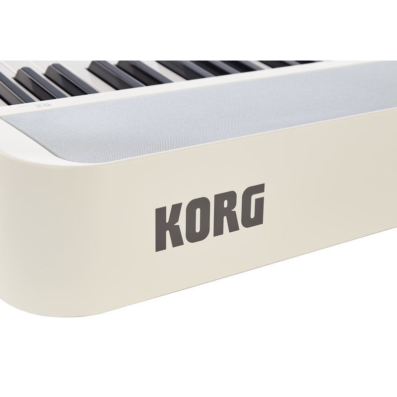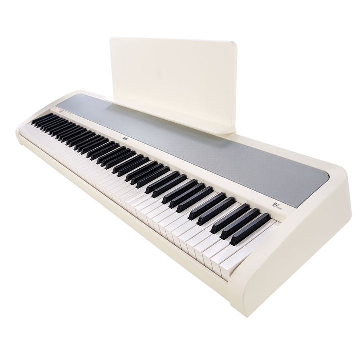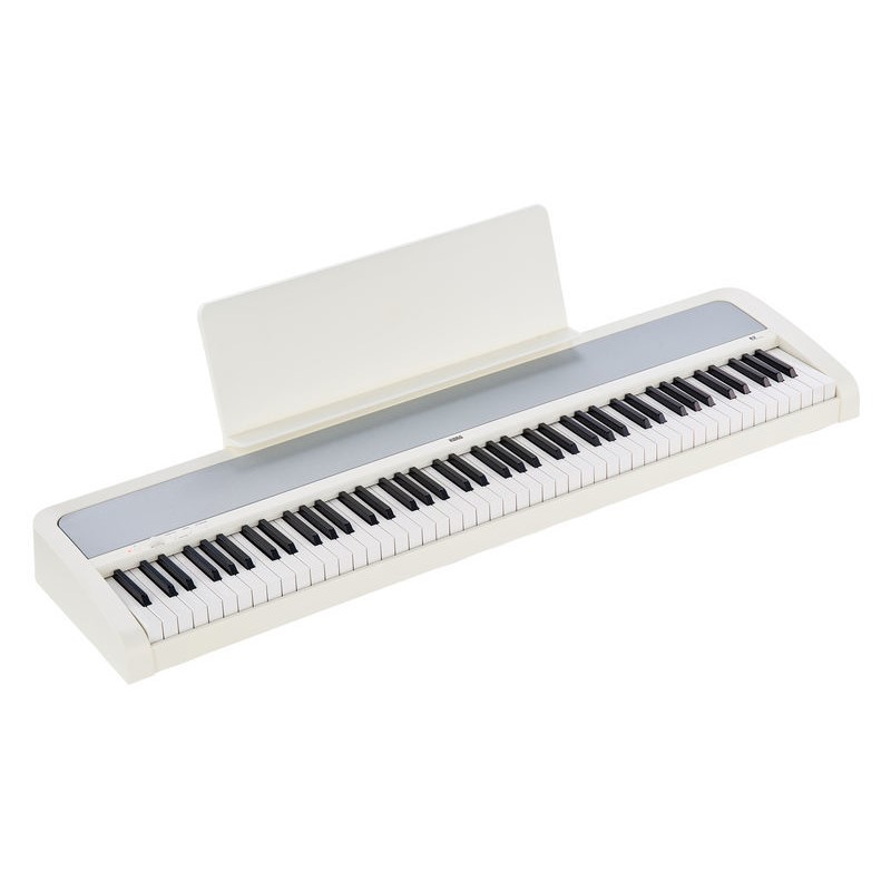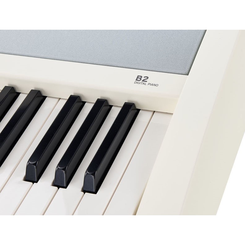 Piano digital B2-WH de Korg. Compacto y económico, aparte de tener las características fundamentales de un piano (sensación auténtica de toque, sonido superior y facilidad de uso), este modelo se diferencia gracias a su diseño original creado desde cero y a sus tecnologías de vanguardia para superar todas las expectativas. Es una de las mejores tecnologías de Korg para los amantes de pianos, podras sonar como un piano acústico gracias a la tecnología MFB servo-asistida, con dos altavoces de rango completo junto con un radiador pasivo, que reproducen los tonos resonantes que emanan de la caja de un piano acústico, con especial atención a la gama de graves. Esta tecnología MFB (Motional Feedback) ajusta el movimiento del cono, permitiendo que las frecuencias bajas se reproduzcan con una distorsión mínima. Durante el funcionamiento, se detecta el movimiento (velocidad) del cono del altavoz (superficie vibratoria), y una señal que compensa la respuesta mecánica de la caja y los altavoces es devuelta al amplificador (retroalimentación). Tambien con este piano B2 le han dado especial atención a la experiencia de tocar un piano real. El B2 está repleto de sonidos cuidadosamente seleccionados, a partir de legendarios pianos de cola de todo el mundo. Incluye software y varios conectores para una experiencia de piano verdaderamente actual.