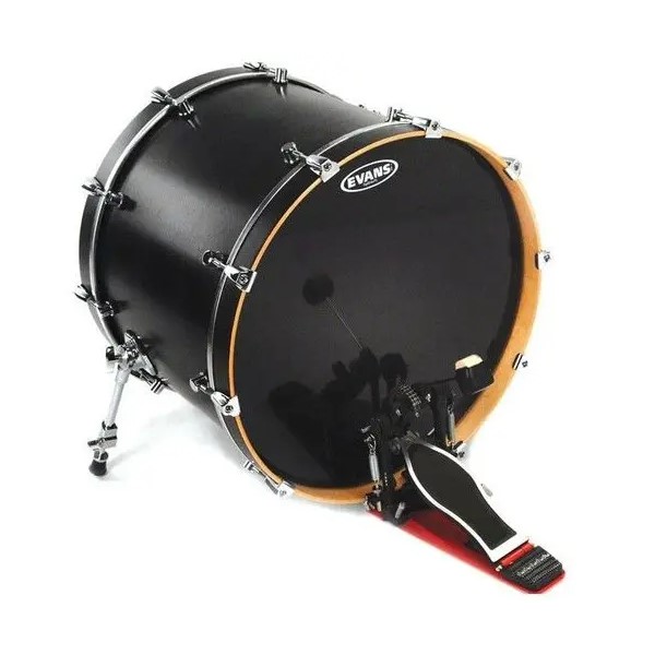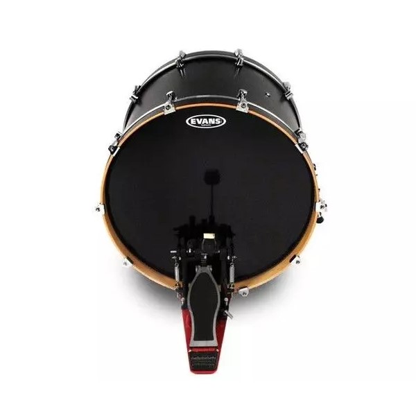 Parche batidor de Evans de 22. Evans nos ofrece un parche hidráulico de 2 capa y con un diseño en negro, que nos proporciona un sonido contundente.
