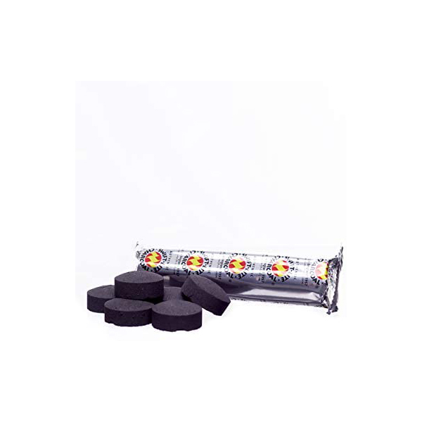 Pack de 10 pastillas de Carbón «Swift Lite». Carbón litúrgico vegetal de encendido fácil e instantáneo, sin olor, tiene una duración media de una hora y un tamaño pequeño de 4 cm de diámetro