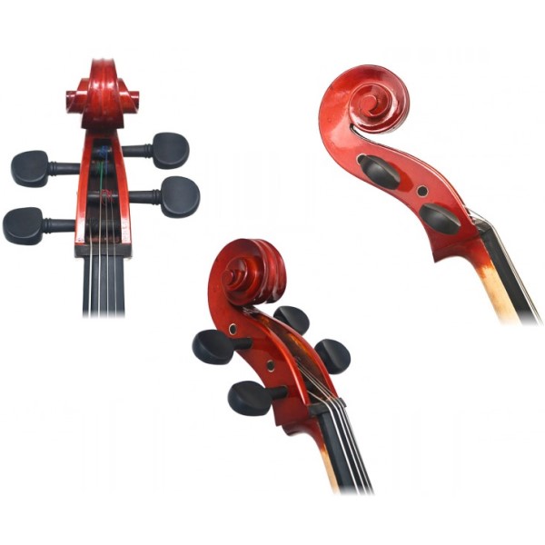 Violoncello para principiantes Kreisler Beginner. Perfecto para estudiantes que están empezando a descubrir el mundo de la música, fabricado para que se adapte con la mayor cómodidad y sea posible sacar un sonido ideal, gracias a las maderas utilizadas en su fabricación (Madera sólida. Diapasón de ébano. Cordal metálico con afinadores). Incluye también un arco y un estuche acolchado.