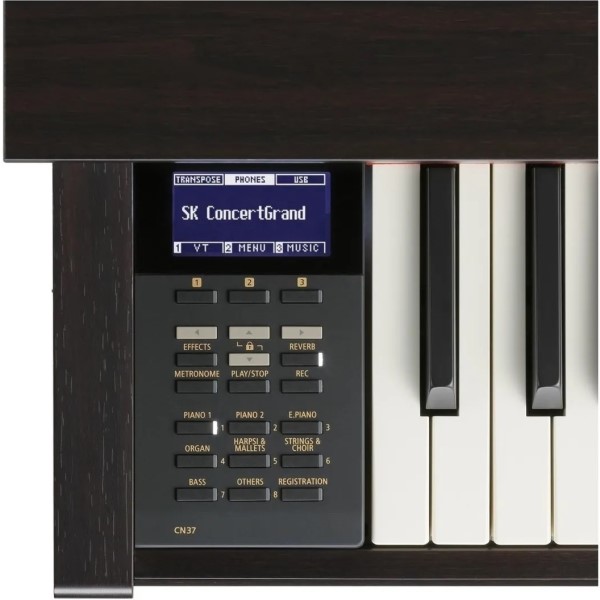 Piano Digital CN37 de Kawai. Con un teclado RHIII puedes recrear una sensación como la de un piano acústico. Eso es gracias a sus 3 sensores que tiene integrado para captar la presión de cada tecla, así conseguir el sonido que desees. Lleva integrado Iveory Touch en la superficie de estas, para que los dedos y la sensación sea lo más satisfactoria posible. Tembién mantiene un sonido equilibrado, sin oscilaciones a la hora de tocar pasajes fortísimos y estacatto. Disponible en tres colores (Negro, Palisandro, Blanco)
