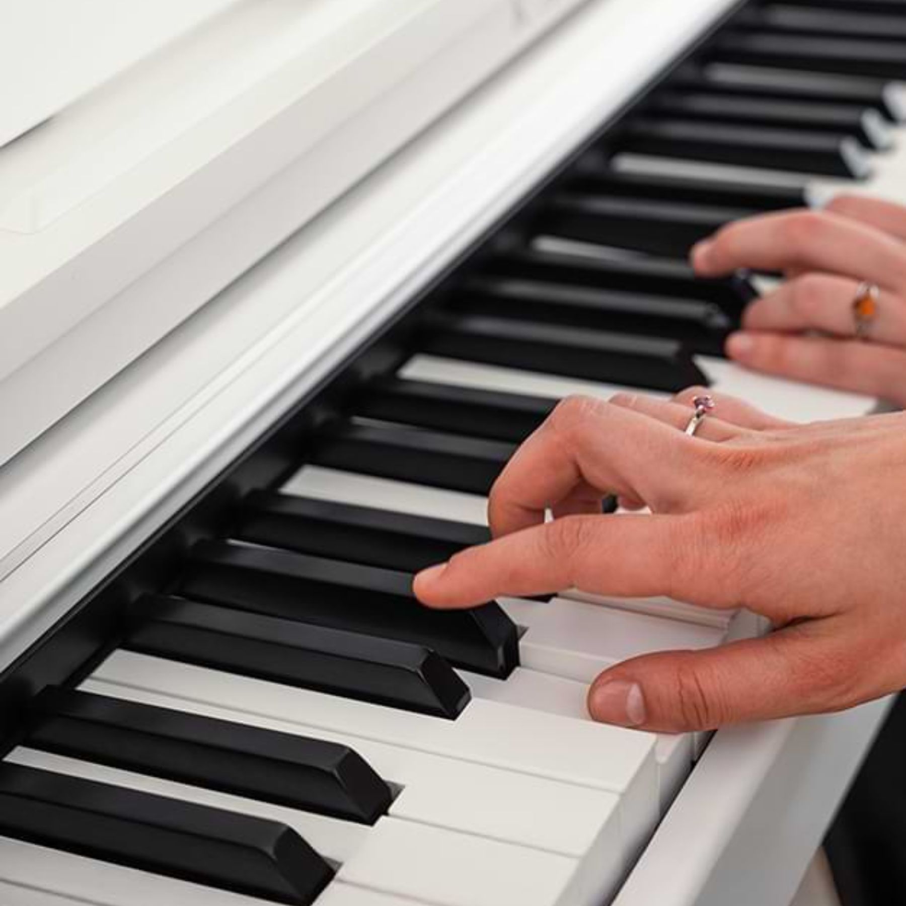 Piano digital CX102WH: un piano conectado, compacto y lleno de expresión. Disfruta de un sonido envolvente y funciones inteligentes para tocar, aprender y crear.