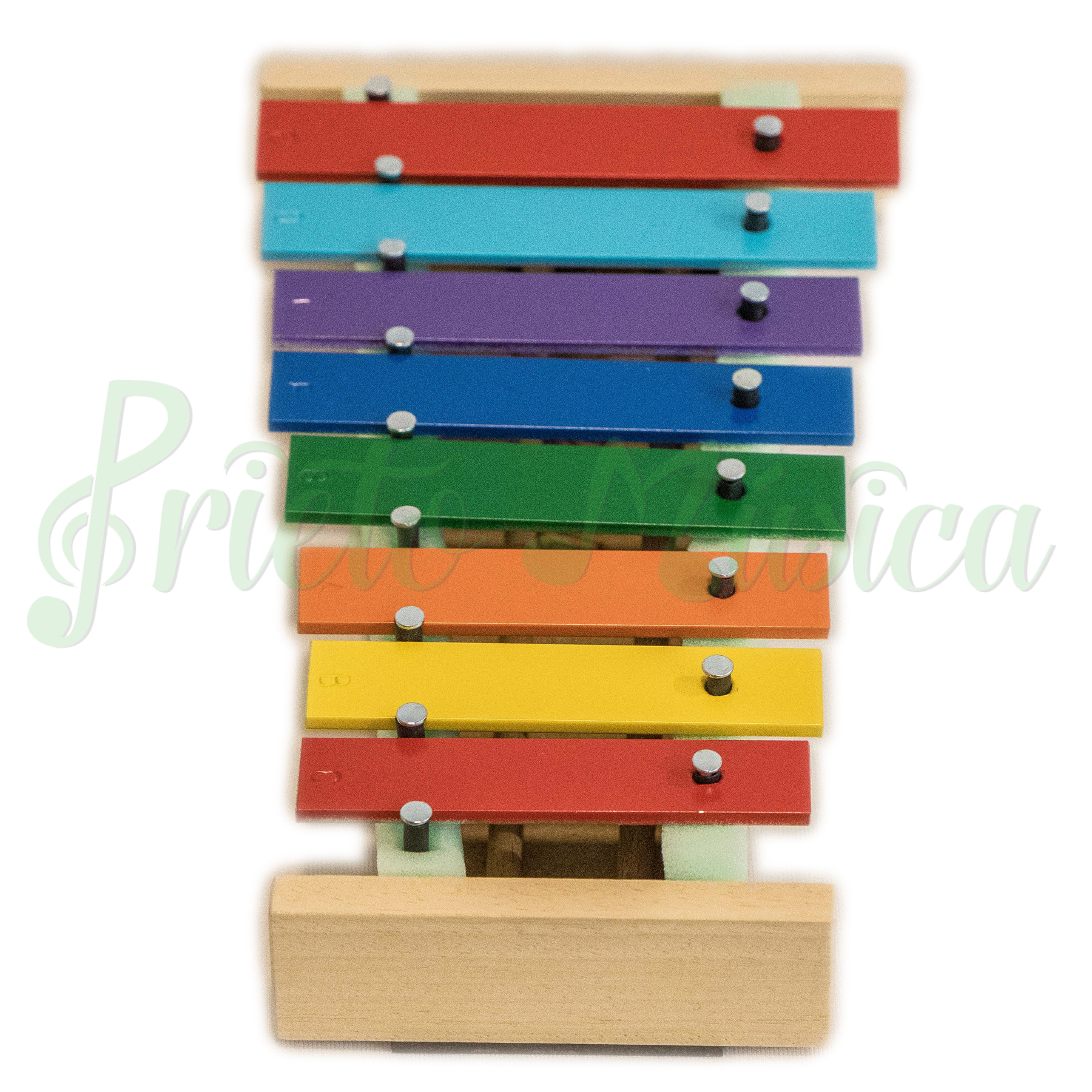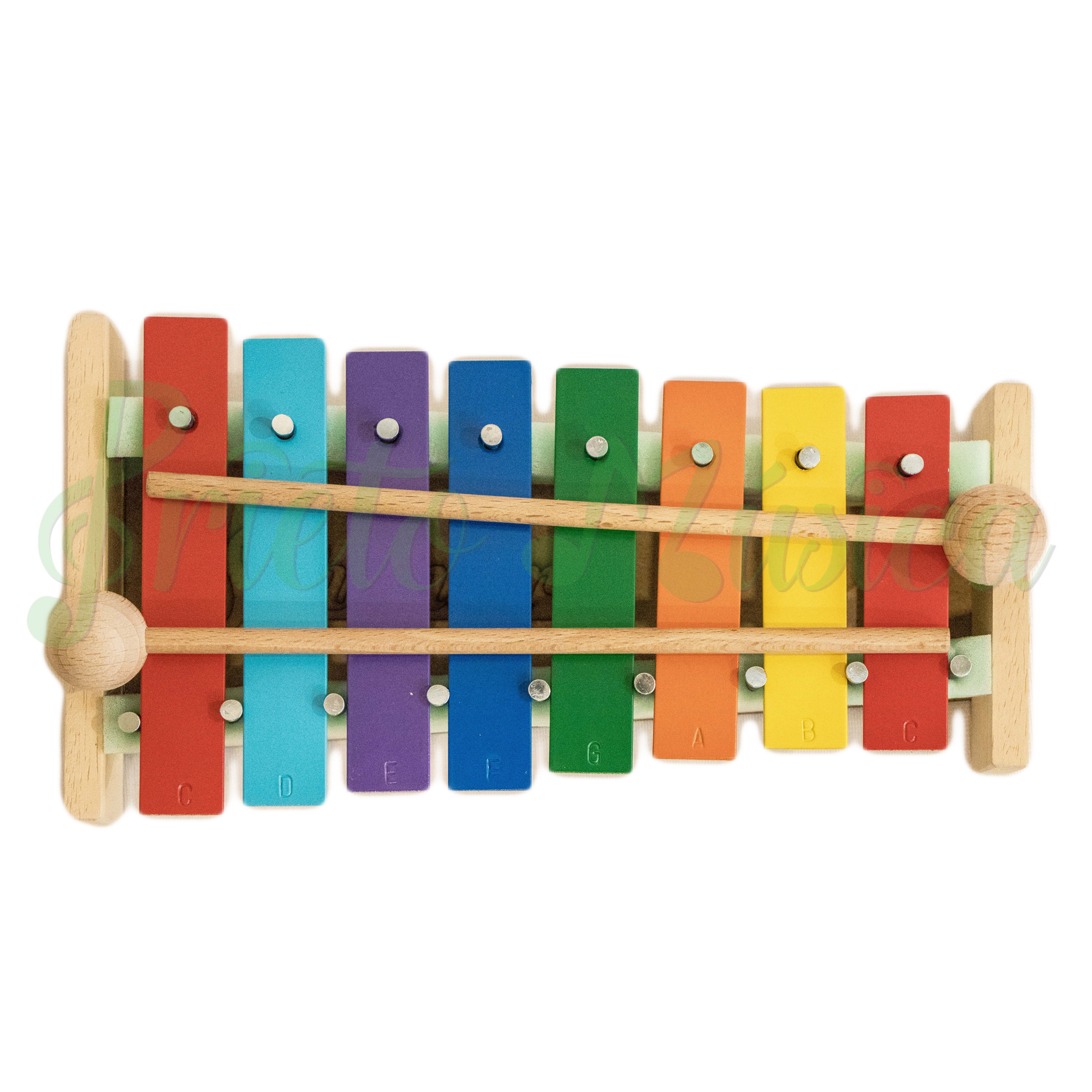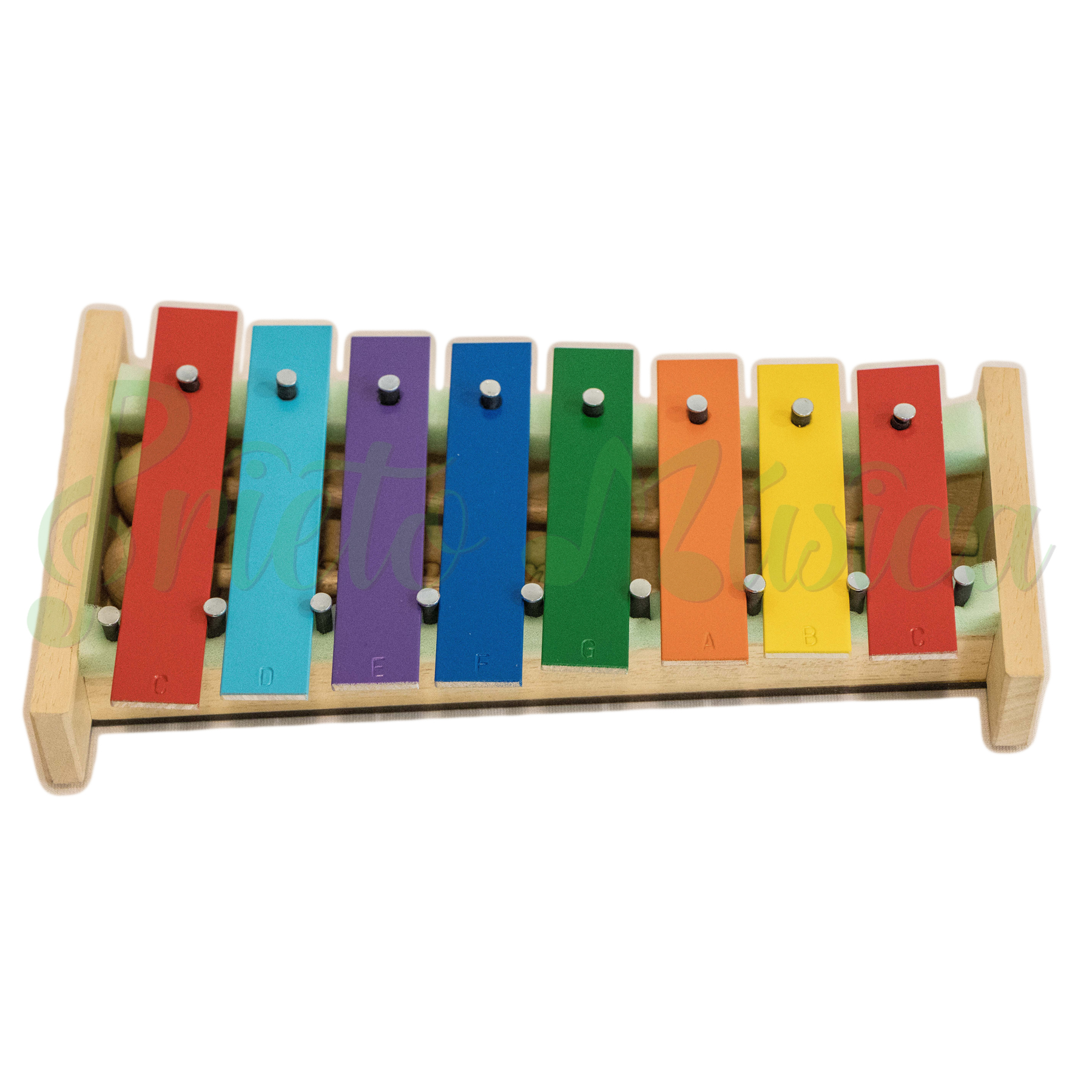 Maravilloso Metalofono Diatonico de 8 notas infantil.Ideal para niños pequeños y de edad un poco mas avanzada ,Es un instrumento con una calidad muy alta ya que es completamente artesanal 100 x 100. Cuenta con 8 laminas de aluminio de primerisima calidad lo cual la afinacion es muy precisa y correcta.