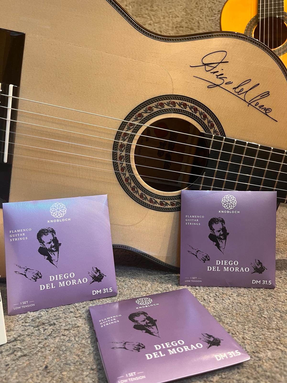 Diego y Knobloch colaboraron durante más de 10 años para crea la línea DM. El objetivo de esta colaboración era encontrar un juego de cuerdas que combinara con la guitarra y la técnica de ejecución de Diego. Naturalmente, el centro de atención fue mantener el sonido cálido y redondo y al mismo tiempo lograr una entonación impecable, durabilidad y una tocabilidad excepcional. La versatilidad de estas cuerdas las hace aptas para cualquier guitarra flamenca. El timbre rico y profundo característico de Luna Flamenca evoca un sentimiento de sonidos gitanos tanto nuevos como antiguos.