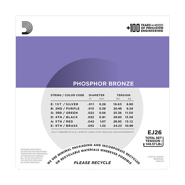 D´addario / Ej-26 / Custom Lite Phosphor Bronce Juego Completo. 011/015/022b/032b/042b/052b. Cuerdas De Calibre Ligero Ideales Para Principiantes O Musicos Que Prefieren Un Tono Mas Suave Y De Facil Flexion. El Bronce Fosforado Fue Untroducido En Las Cuerdas Por D´addario En 1974 Y Se Ha Convertido En Sinonimo De Tono Calido, Brillante Y Bien Equilibrado. Entorchado Sobre Nucleo De Acero Al Carbono Exagonal, Consiguiendo Una Gran Entonacion.