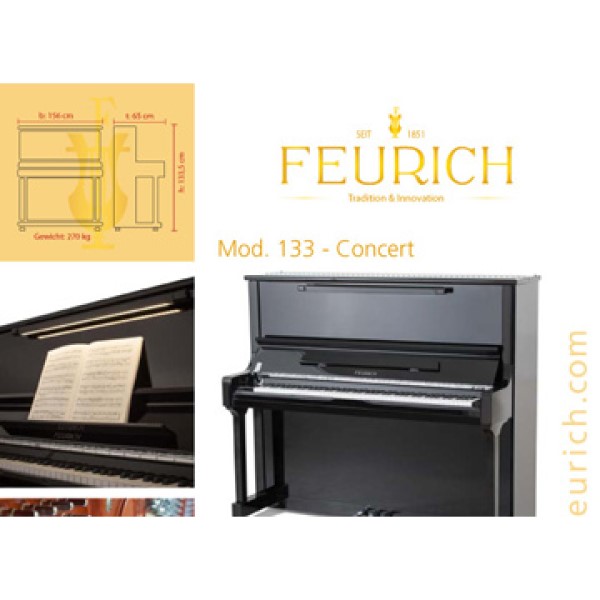 Piano vertical Feurich en negro pulido, fabricado en Alemania, materiales exclusivos limitados europeos de alta tecnología,cuenta con un sonido lleno y potente que opaca ciertamente algunos modelos de pianos de cola pequeños. Construcción extra ancha para un sonido excepcionalmente grande • Escala dúplex para un brillo sin igual en los agudos • Silienagraffen Revistas de silia mecanizadas por máquinas CNC para una mayor limpieza en el segmento de bajos • Alambre para cuerdas de acero inoxidable Paulello • Mecánica precisa de FEURICH sin componentes plásticos • Fieltros de los martillos de Wurzen, calidad AA • Cubierta de madera para teclas negras para una sensación de toque particularmente auténtica • Lámpara LED antireflejo integrada y «soft close» para cierre suabe de la tapa • Pedal sordina FEURICH para el modo de reproducción a bajo volumen: ¡para vecinos sensibles!