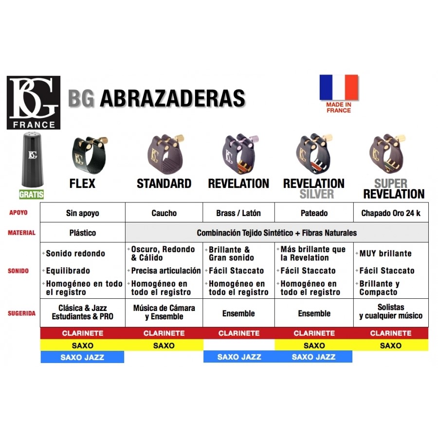 abrazadera bg flex para saxofon alto  con