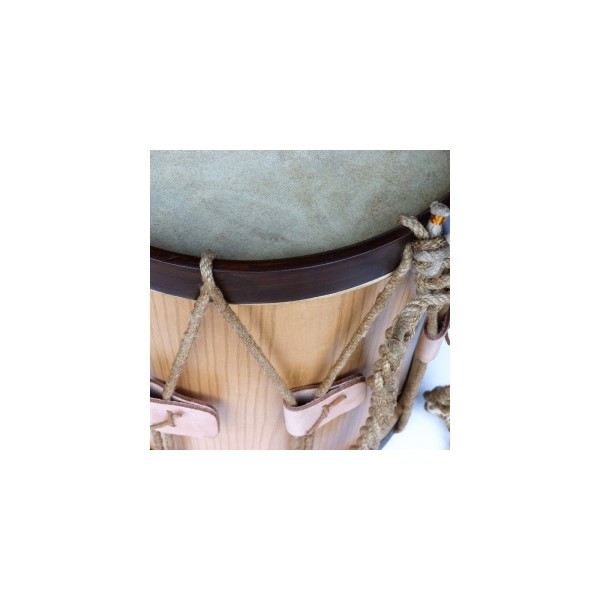 Tambor barroco HL008 de Fortcop. Con cuerpo de madera, chapado de madera noble color miel oscuro, aros de madera de color miel oscuro. Tambor de membranas de piel, cuerda y tensores de piel. Profundo, de sonido no muy abierto. Precioso por el sonido y la estética. Parche: disponible en piel natural o sintético. Fijación: 2 ganchos en el aro superior.