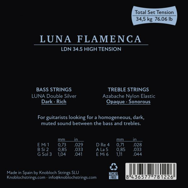 Las nuevas Cuerdas Luna Flamenca de Knobloch se han diseñado y fabricado pensando para aquellos guitarristas que buscan un sonido homogéneo entre las cuerdas graves (bordones) y agudas (primas) de la guitarra flamenca.