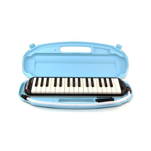 Melódica study-32 de Suzuki (M32). La melódica es un instrumento de viento, parecido al acordeón pero soplando, contiene 32 teclas con disposición tonal, como un piano convencional, pero se caracteriza por su peso ligero y su tamaño tan compacto. Así es mucho más fácil de transportarlo y es muy divertido de tocar.