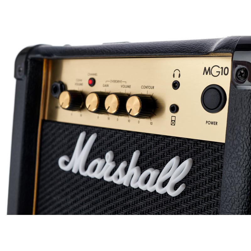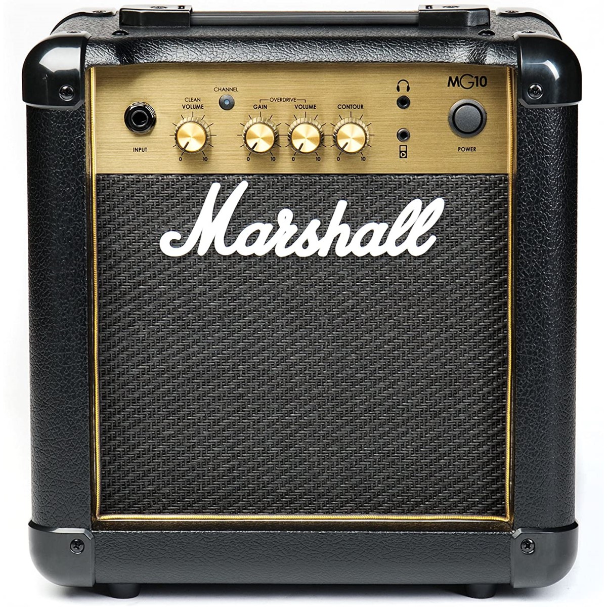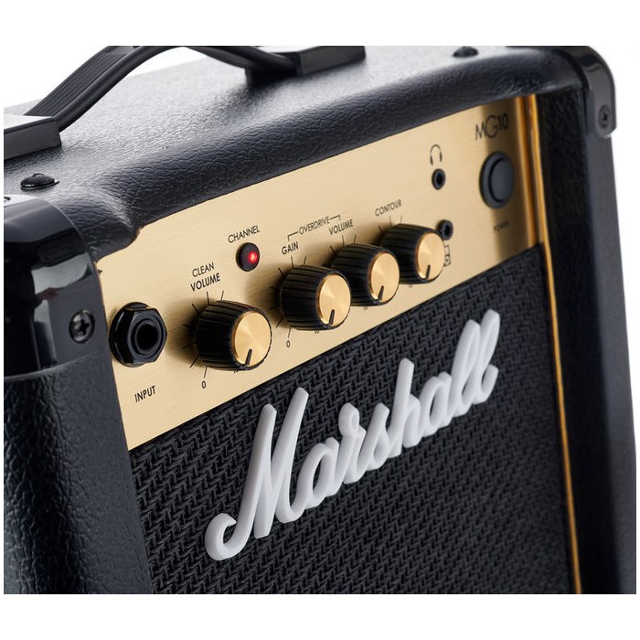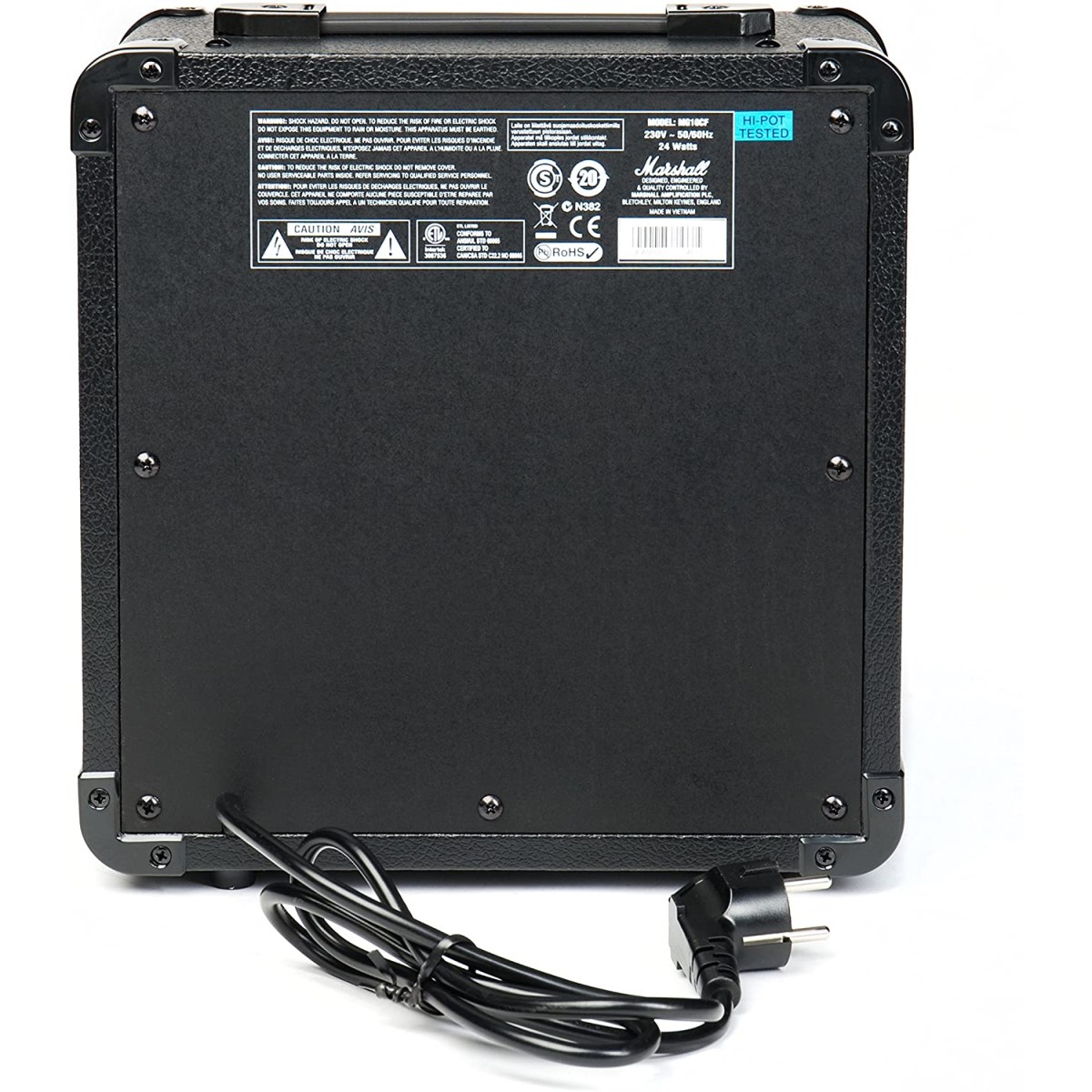 Amplificador con transistores de Marshall. Es un amplificador de calidad con 10W de potencia y un altavoz de 1 x 6,5. Muy fácil de transportar con un sonido claro. Con una impedancia de 8 Ohms.