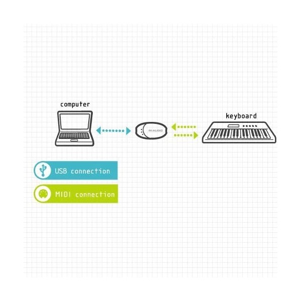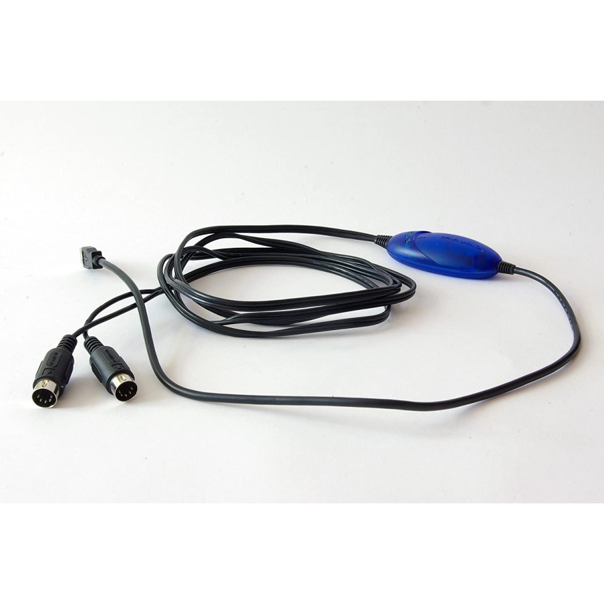 Conector de USB a MIDI MiMidsporUno. Este cable tiene la interfaz USB MIDI más pequeña y simple, USB Uno, ofrece una operación básica 1 x 1 con movilidad alimentada por bus, e incluso viene con sus propios cables USB y MIDI integrados. Todo muy sencillo y eficaz para una practica sin complicaciones.