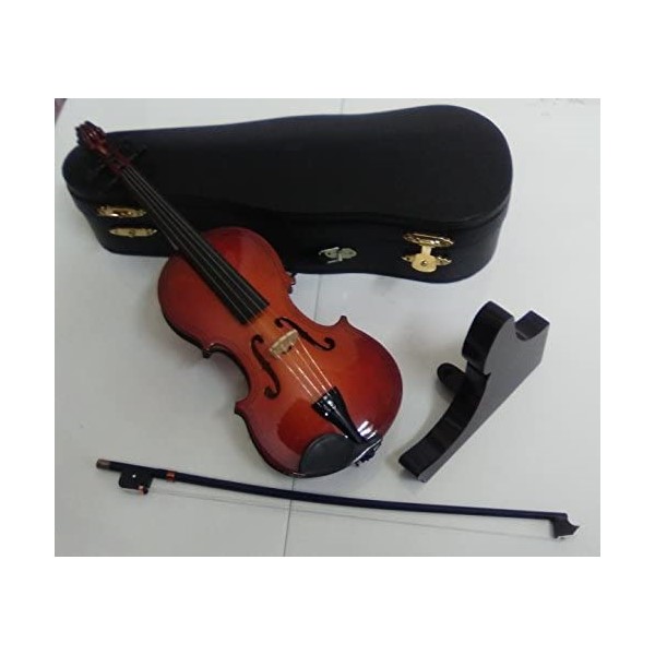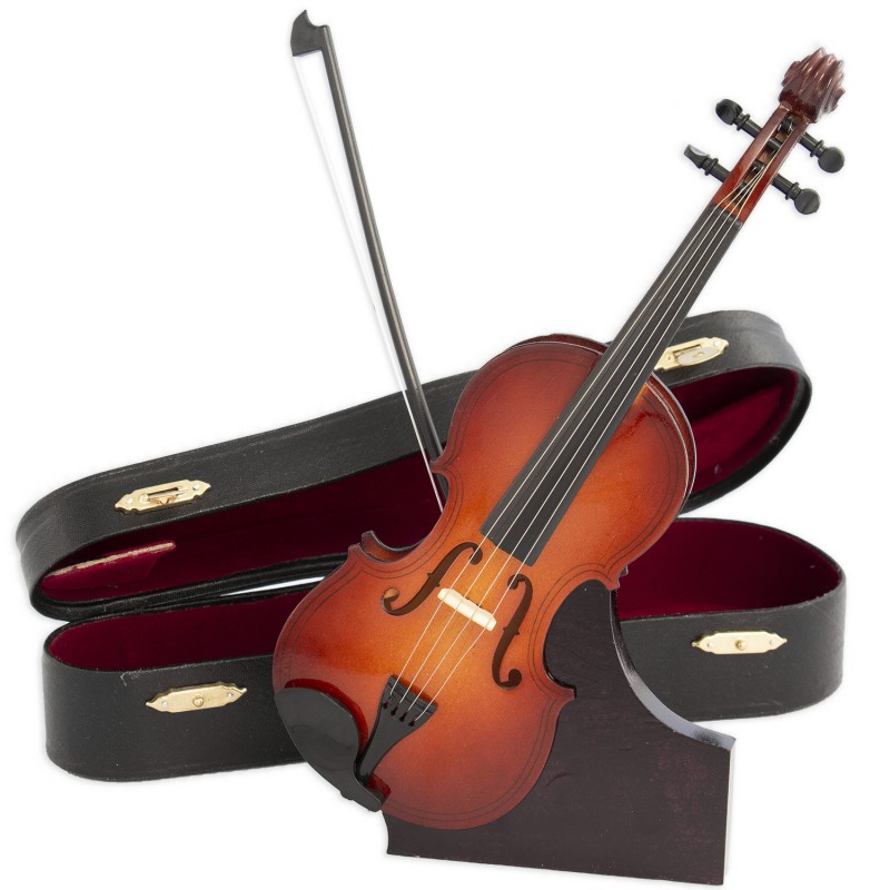 Miniatura de violín en madera decorativa. Con soporte en madera y estuche, es un buen regalo y una buena forma para dar un tono más musical a su hogar.