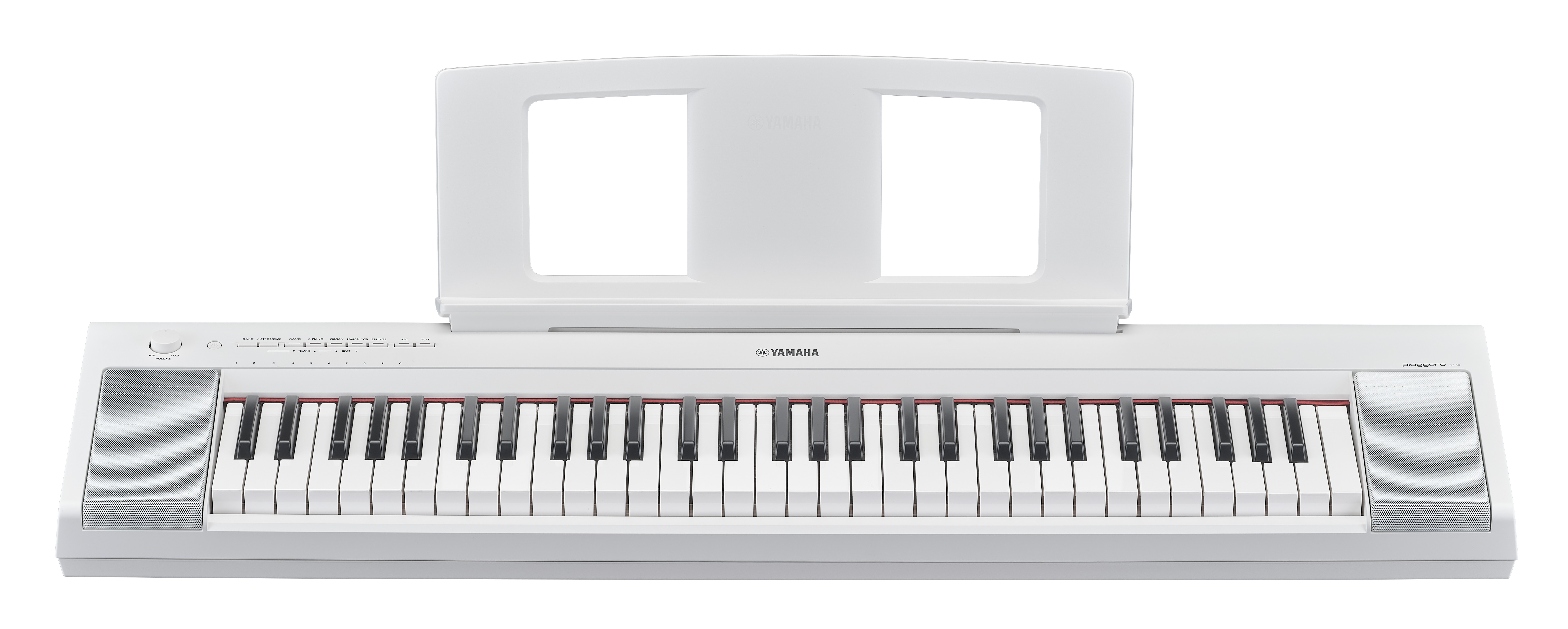 Tal vez quieras aprender a tocar el piano, pero las teclas te resultan tan pesadas que crees que tus dedos se cansarán; o tal vez piensas que tus dedos no son lo suficientemente fuertes como para lograr tocar esos "fortes" correctamente. Sería una pena que preocupaciones tan triviales te desanimaran a tocar el piano. El tacto ligero del Piaggero te permite experimentar el placer de tocar un teclado. Incluso con su tacto más suave, el sonido del Piaggero cambia de forma realista en respuesta a la fuerza con la que toques, lo que te permite disfrutar de una expresividad cercana a la de un piano acústico. Al igual que los pianos convencionales, las teclas del NP-35 son más pesadas en el registro grave y más ligeras en el agudo (Graded Soft Touch). Experimenta la sensación pianística y el tacto ligero de este nuevo teclado.
