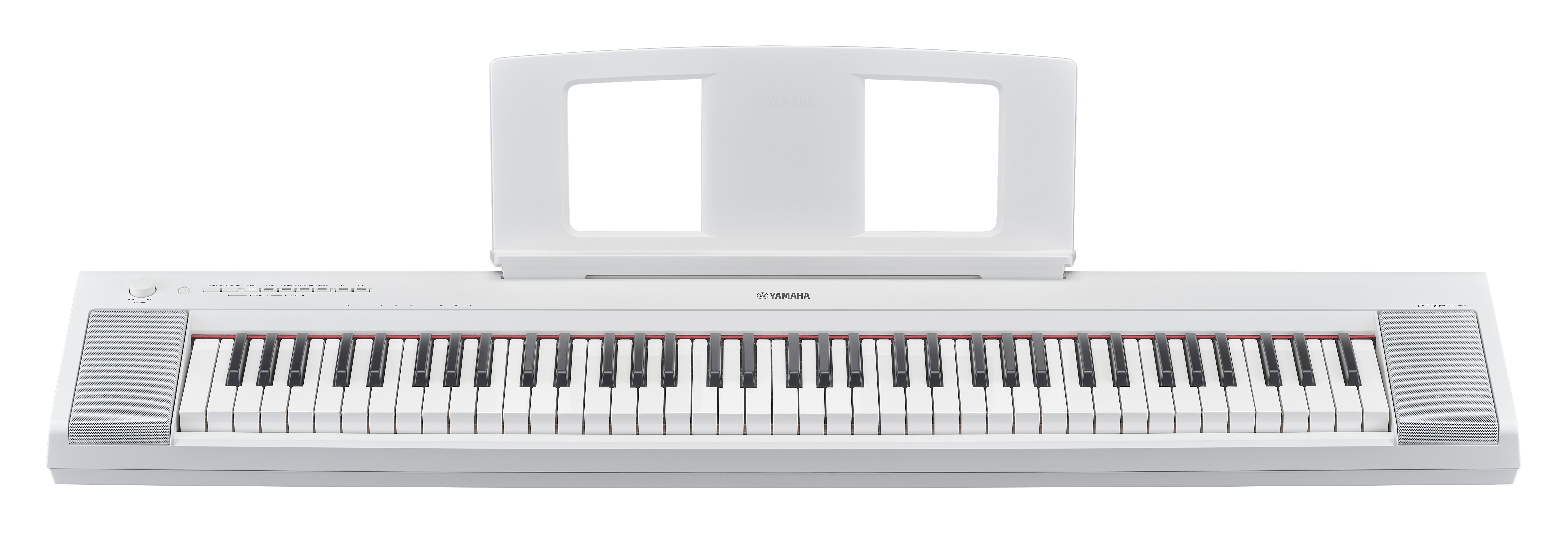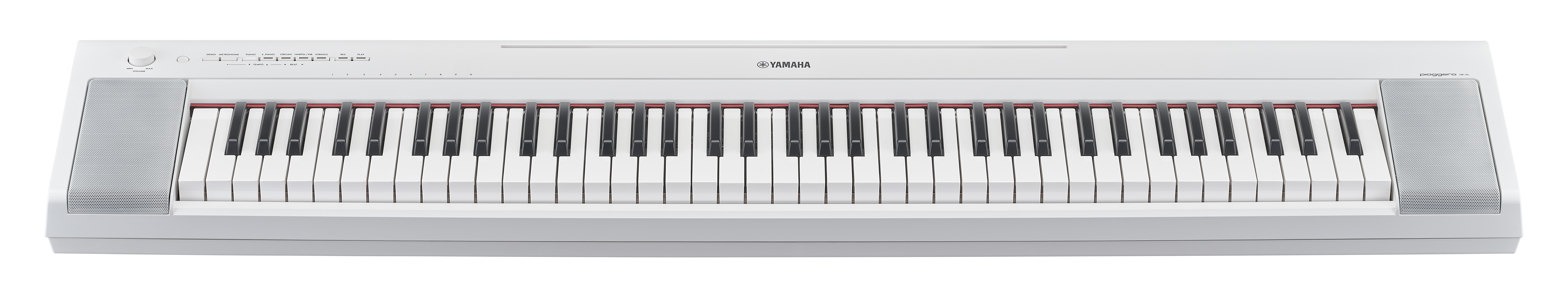 Tal vez quieras aprender a tocar el piano, pero las teclas te resultan tan pesadas que crees que tus dedos se cansarán; o tal vez piensas que tus dedos no son lo suficientemente fuertes como para lograr tocar esos "fortes" correctamente. Sería una pena que preocupaciones tan triviales te desanimaran a tocar el piano. El tacto ligero del Piaggero te permite experimentar el placer de tocar un teclado. Incluso con su tacto más suave, el sonido del Piaggero cambia de forma realista en respuesta a la fuerza con la que toques, lo que te permite disfrutar de una expresividad cercana a la de un piano acústico. Al igual que los pianos convencionales, las teclas del NP-35 son más pesadas en el registro grave y más ligeras en el agudo (Graded Soft Touch). Experimenta la sensación pianística y el tacto ligero de este nuevo teclado.
