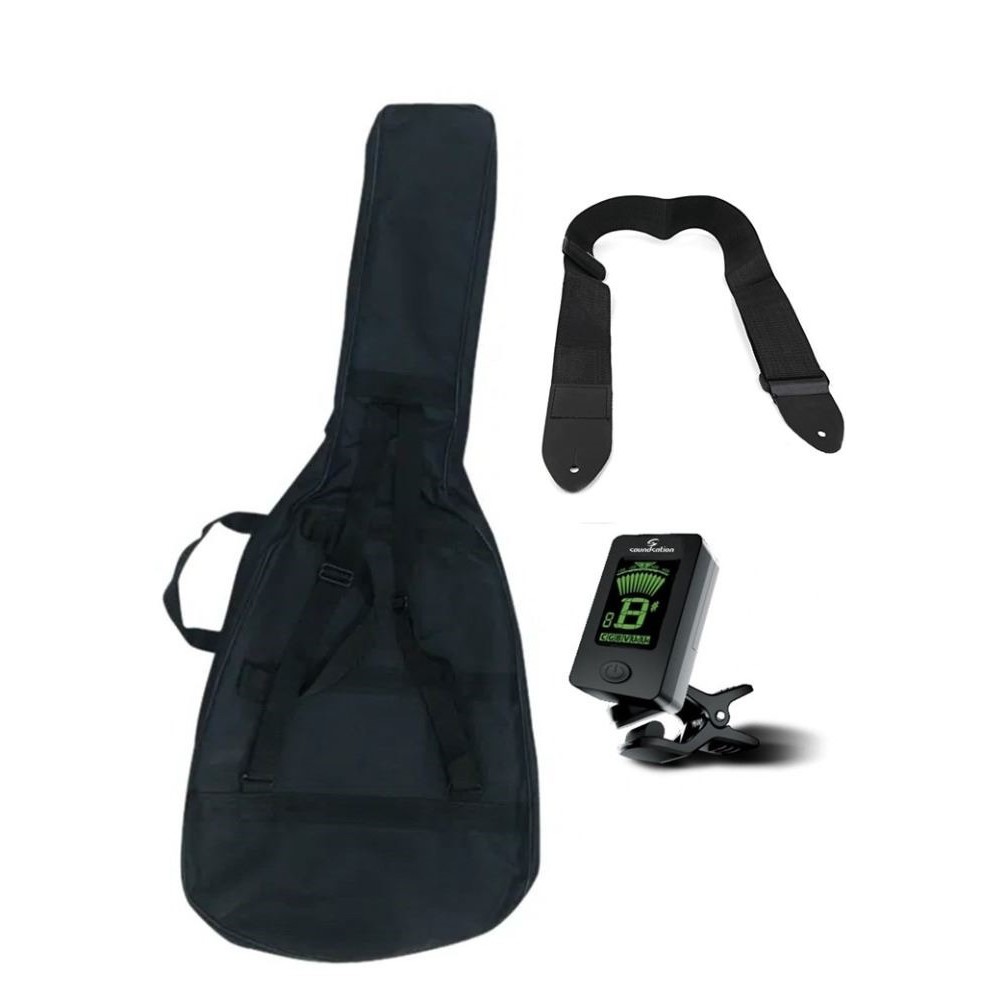 Pack de iniciacion guitarra Acustica mini jumbo Daytona >Estas buscando una guitarra de iniciacion para empezar en el mundo de la musica pues este pack es tuyo, Ofrece una maravillosa guitarra con calidades estupenda para iniciarte a ello,Tambien contamos con su funda y su afinador para que vayas a tus clases o concierto bien equipado y dispongas de todo lo necesario para toca.