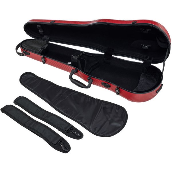 Estuche para violín 4/4 de color roja, es una funda que realmente va a proteger su instrumento, fabricada con los materiales más rígidos y con el mejor acolchado para que su instrumento no tenga ningun tipo de problemas para afrontar cualquier tipo de viaje y malas condiciones ambientales. Aparte es regulable y tiene un cierre de seguridad con llave y asas tanto para llevarla a mano que colgada como una mochila.