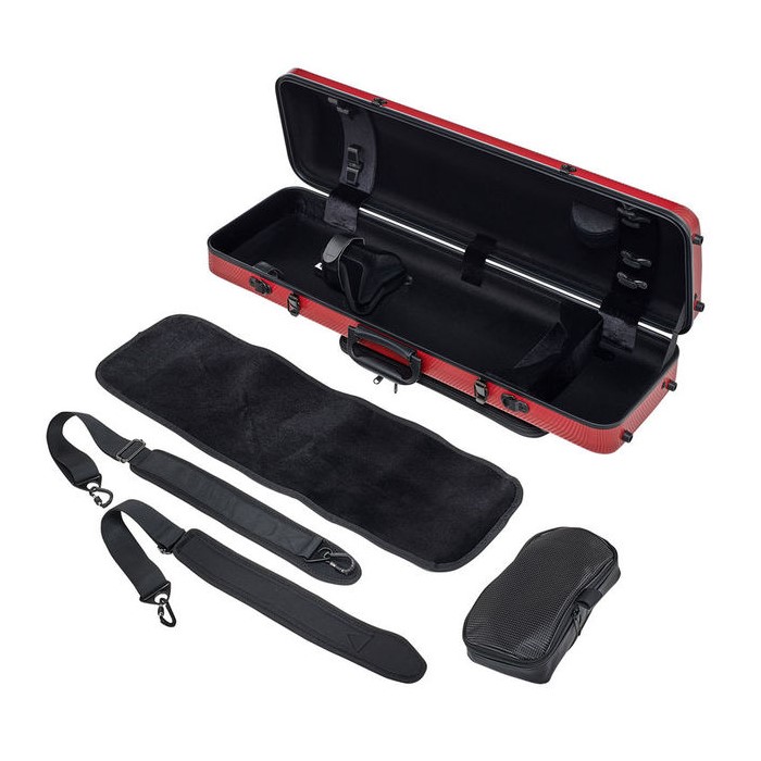 Estuche para violín 4/4 de color rojo, es una funda que realmente va a proteger su instrumento, fabricada con los materiales más rígidos y con el mejor acolchado para que su instrumento no tenga ningun tipo de problemas para afrontar cualquier tipo de viaje y malas condiciones ambientales. Aparte es regulable y tiene un cierre de seguridad con llave y asas tanto para llevarla a mano que colgada como una mochila.