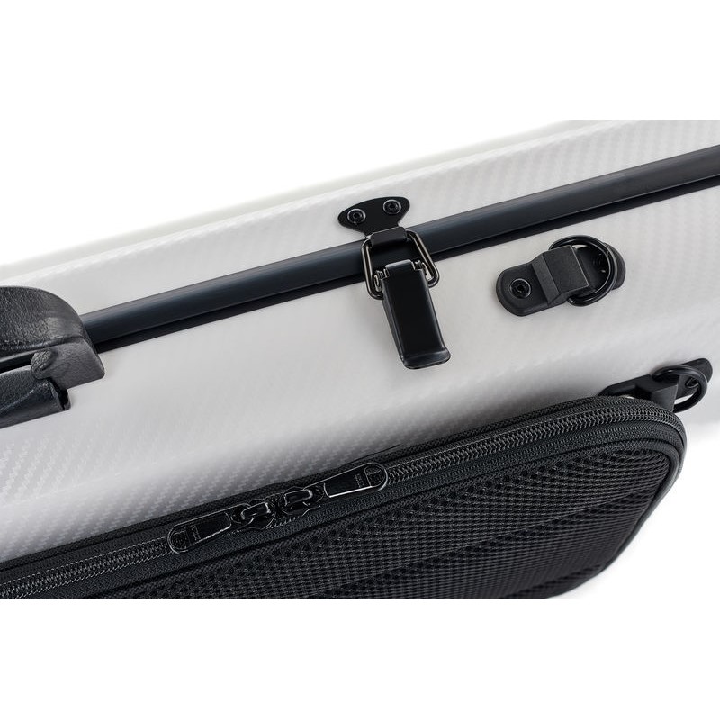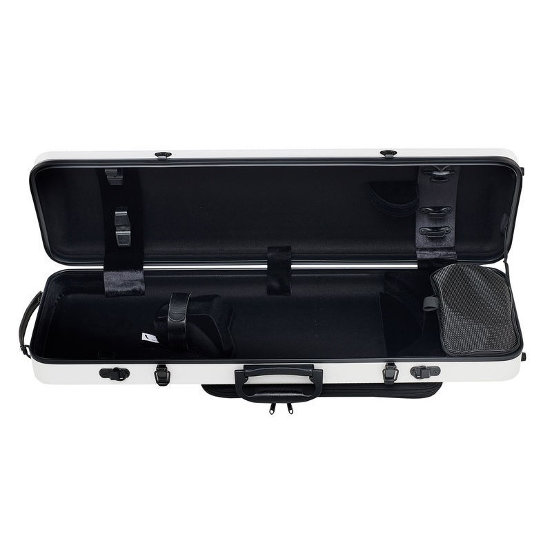 Estuche para violín 4/4 de color blanco, es una funda que realmente va a proteger su instrumento, fabricada con los materiales más rígidos y con el mejor acolchado para que su instrumento no tenga ningun tipo de problemas para afrontar cualquier tipo de viaje y malas condiciones ambientales. Aparte es regulable y tiene un cierre de seguridad con llave y asas tanto para llevarla a mano que colgada como una mochila.