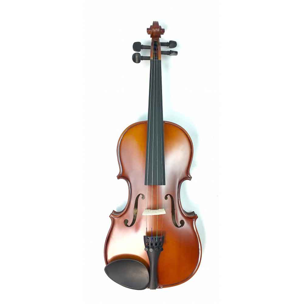 Violín 4/4, fabricado con madera europea, tapa de abeto maciza y fondo de arce macizo, barnizado a mano, diapasón, clavijas y barbada de ébano, cordal con micro afinador, arco de Brasil con nuez en ébano, incluye estuche semirígido con correas para su transporte.