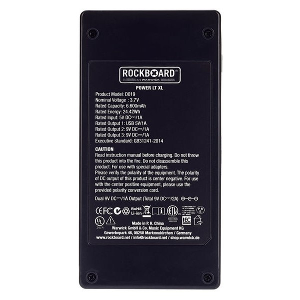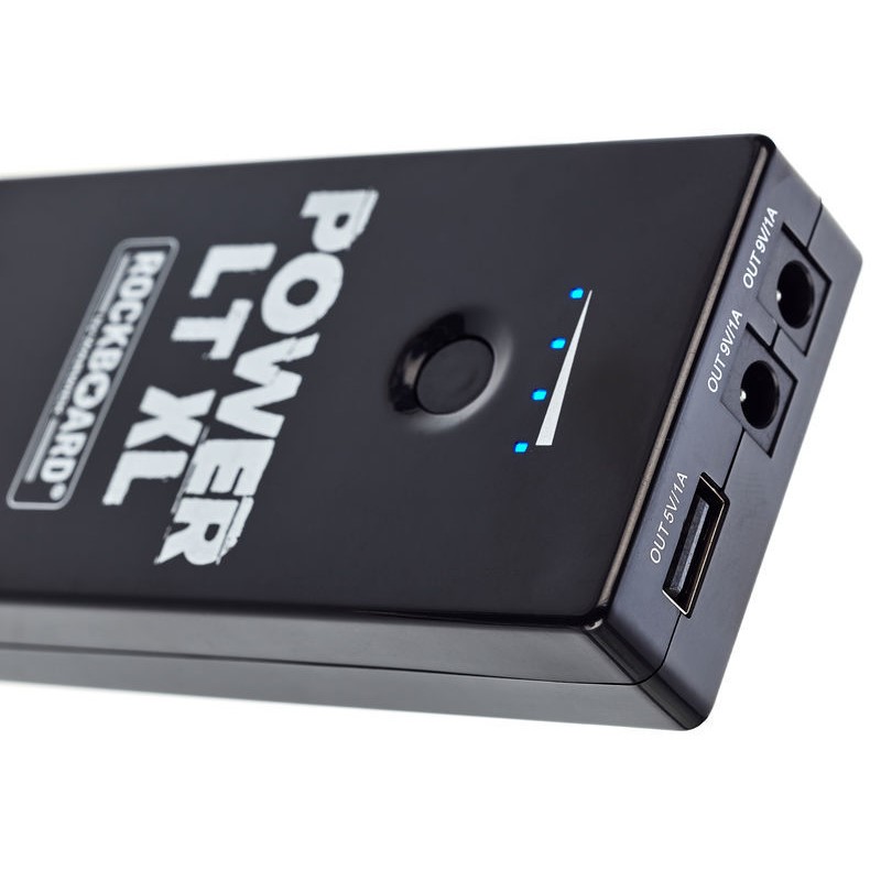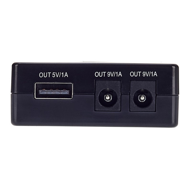 Batería recargable o fuente de alimentación que sirve para cargar los pedales de efectos. También es compatible para cargar los smartphones y otros dispositivos USB. Esta compuesto por 3 baterias de iones de litio de alto rendimiento, con una capacidad de 6.6mAh. Una de sus mayores comodidades es poder cargarlo mientras está en uso.