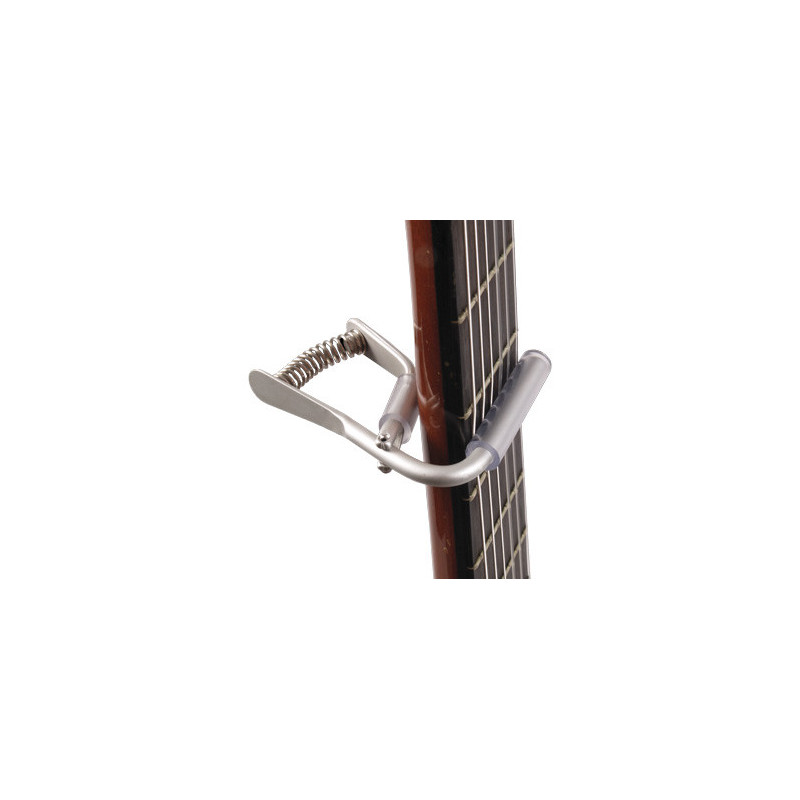 Cejilla Samba para guitarras acústicas y flamencas. Se caracteriza por ser ligera y por su comodidad y rapidez en su colocación, sólo es necesario una mano. Fabricada con aluminio y muelle de acero. Las almohadilla con material transparente flexible para adaptarse fácilmente a cada guitarra. Fabricado en España.