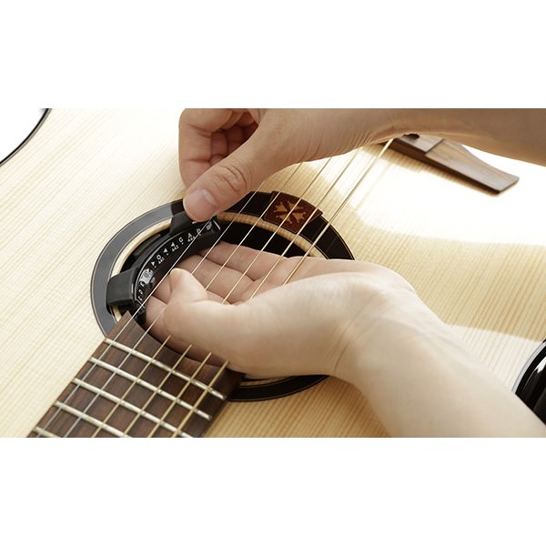 Afinador cromático RP-C2 para la boca de la guitarra de Korg. Es un modelo innvador para los afinadores de guitarras, añadiendo las funcionalidades cromática. Acomplando el afinador en el interior de la boca de tu guitarra acústica, se puede observar el medidor de afinación en un ángulo de visión muy conveniente y cómodo. Con una amplia gama de detección y una función de calibración, este modelo permite una afinación precisa y discreta en una amplia variedad de entornos de interpretación. Rimpitch-C es la elección ideal para los guitarristas acústicos que requieren una opción más flexible de afinación.