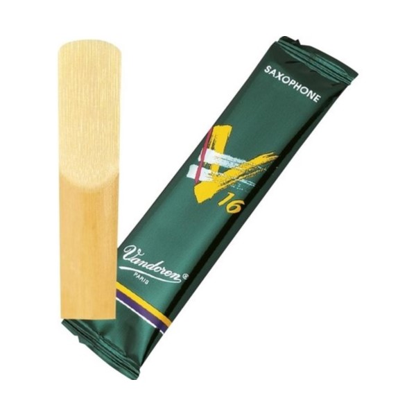 Caña para saxofón tenor SR7225 (Nº2,5) de la serie V.16 de Vandoren. Esta empresa se dedica especialmente a cañas, boquillas y accesorios para clarinete y saxofón, por eso, sus años de experiencia y dedicación para estas partes muy importantes del instrumento, han faborecido a los músicos dandoles una comodidad y una calidad que no encontraría en otro sitio. Esta serie V.16 tiene una punta más gruesa que las cañas Vandoren tradicionales y una paleta más larga. Este tipo de cañas nos proporcionará un sonido más brillante, más percusivo y particularmente bien adaptado a todos los nuevos estilos de música.