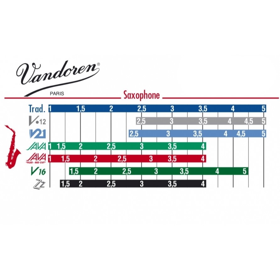 Caña para saxofón alto SR8135 (Nº3,5) de la serie V.21 de Vandoren. Esta empresa se dedica especialmente a cañas, boquillas y accesorios para clarinete y saxofón, por eso, sus años de experiencia y dedicación para estas partes muy importantes del instrumento, han faborecido a los músicos dandoles una comodidad y una calidad que no encontraría en otro sitio. Con esta serie V.21 obtendrás un sonido de gran pureza, particularmente cálido y centrado, manteniendo una excelente proyección sonora. Esta caña permite un picado preciso, así como una mayor facilidad al cambiar de registro.