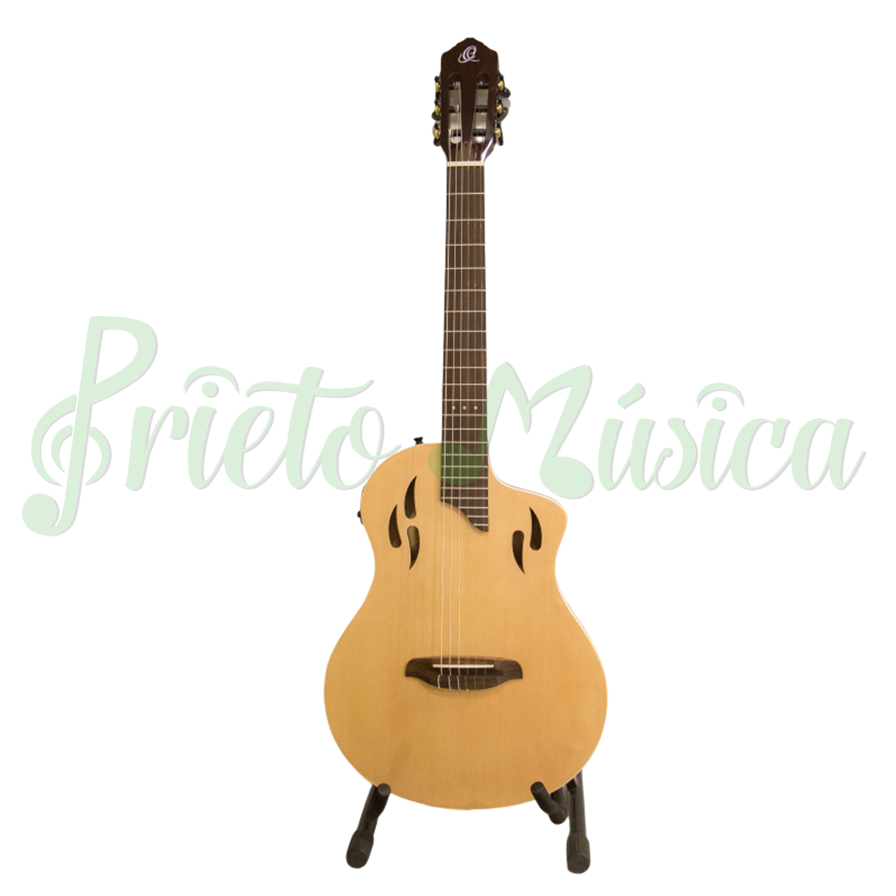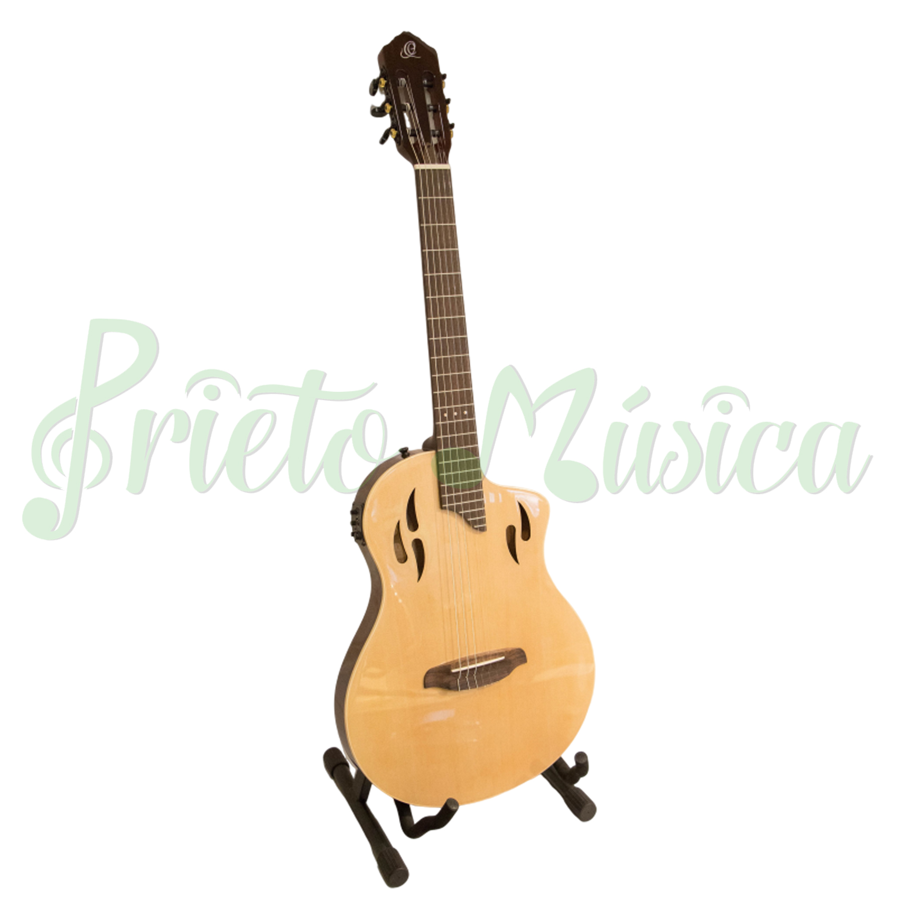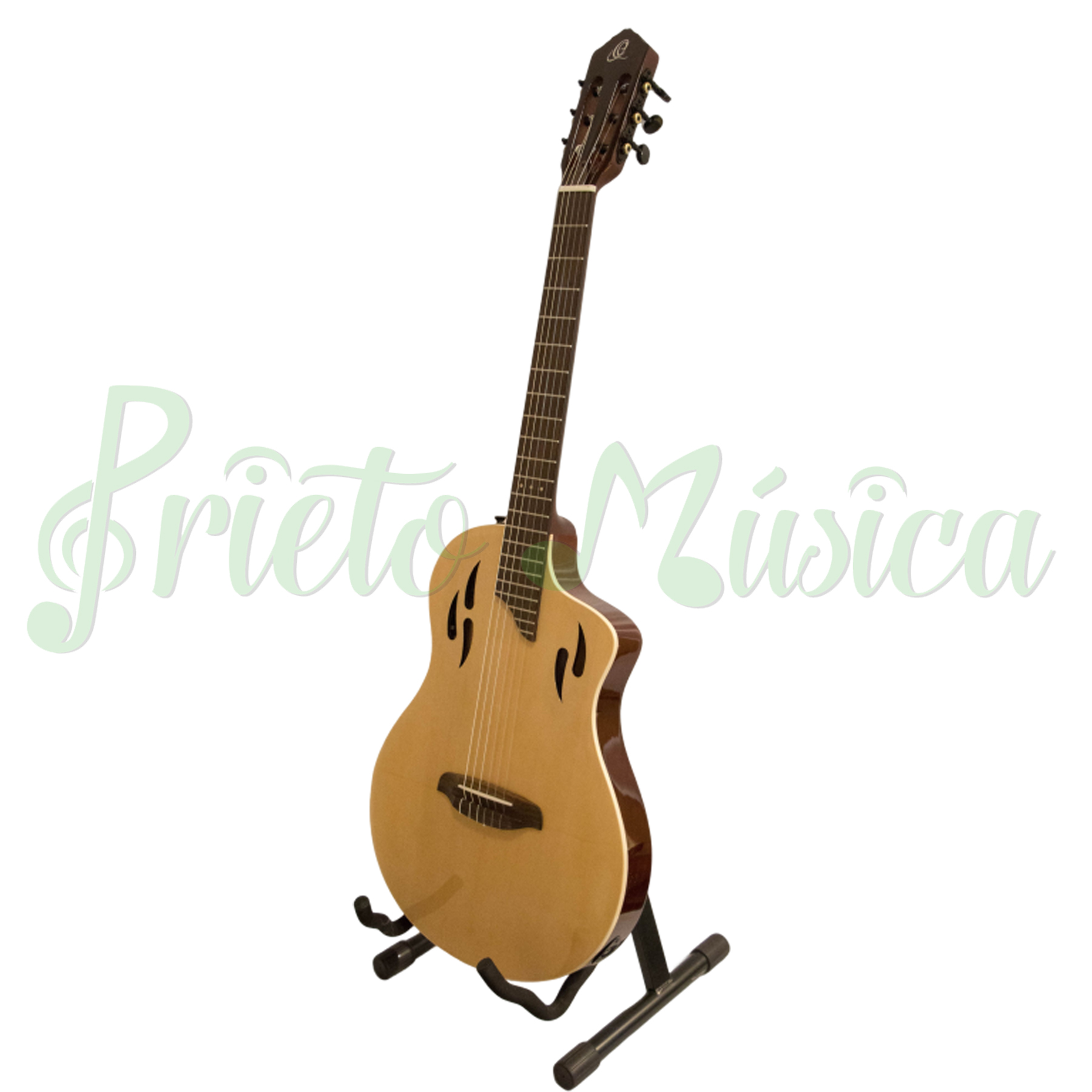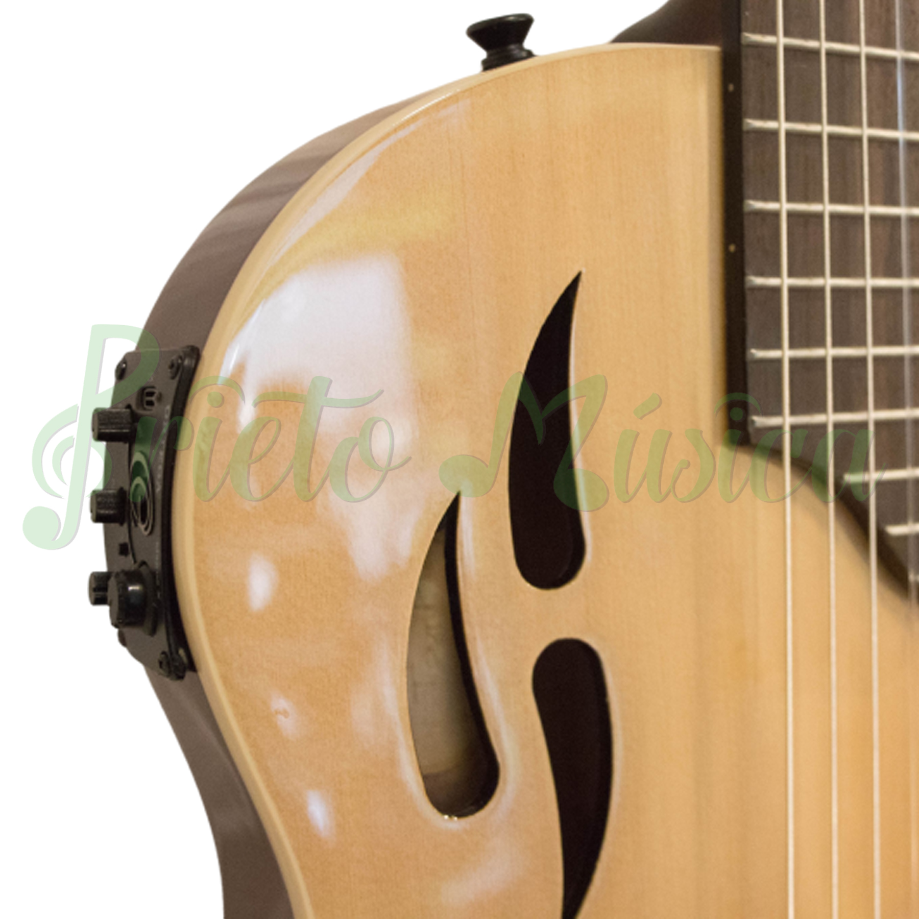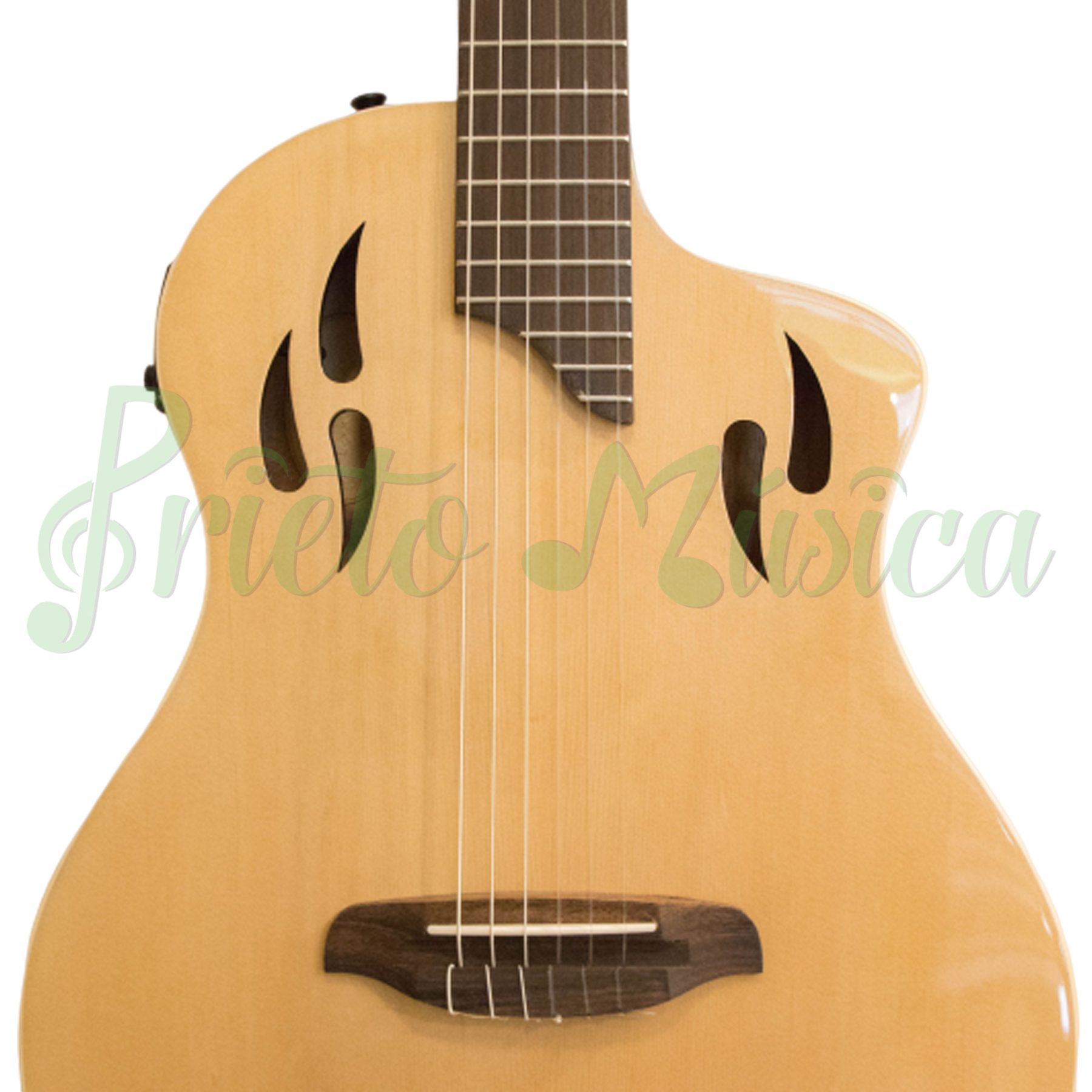 La revolucionaria guitarra eléctrica con cuerdas de nylon TourPlayer está diseñada para tocarla en vivo y ofrece la auténtica calidez y resonancia de una guitarra de nailon al tiempo que elimina los problemas de retroalimentación. Explora un mundo de posibilidades sonoras que nunca creíste posibles en una guitarra de nylon. La TourPlayer combina la belleza de las cuerdas de nylon con el poder y la emoción de una guitarra eléctrica, ofreciendo lo mejor en innovación. Su mástil con un radio amplio y su fácil acceso a los trastes altos de la guitarra hacen que cualquier guitarrista eléctrico/acústico se encuentre cómodo con esta guitarra en las manos. Afinador incluido en el previo.