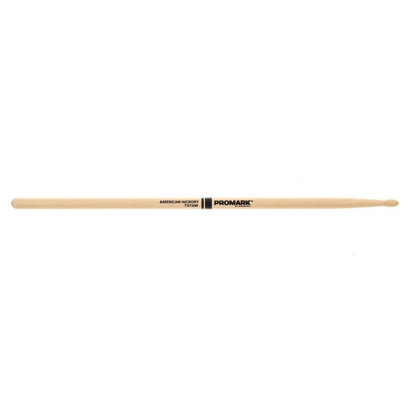 Baqueta con punta de madera con forma oval TX-7AW de Pro Mark. Suave y ligero con cuerpo de madera nogal americano.