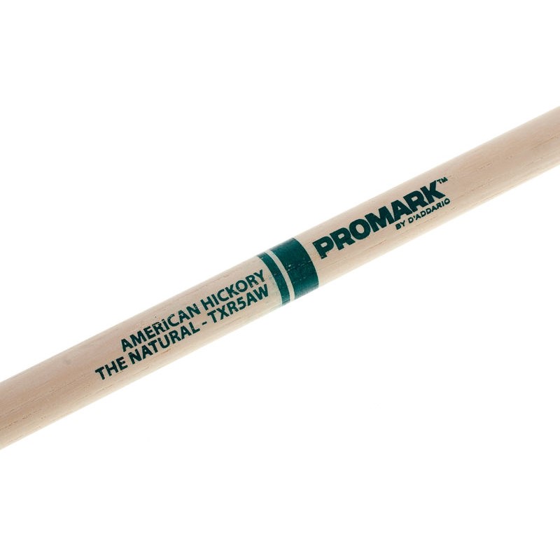 Baqueta con punta de madera TXR-5AW de Pro Mark. Suave y ligero con cuerpo de madera de Hickory.y punta oval de madera
